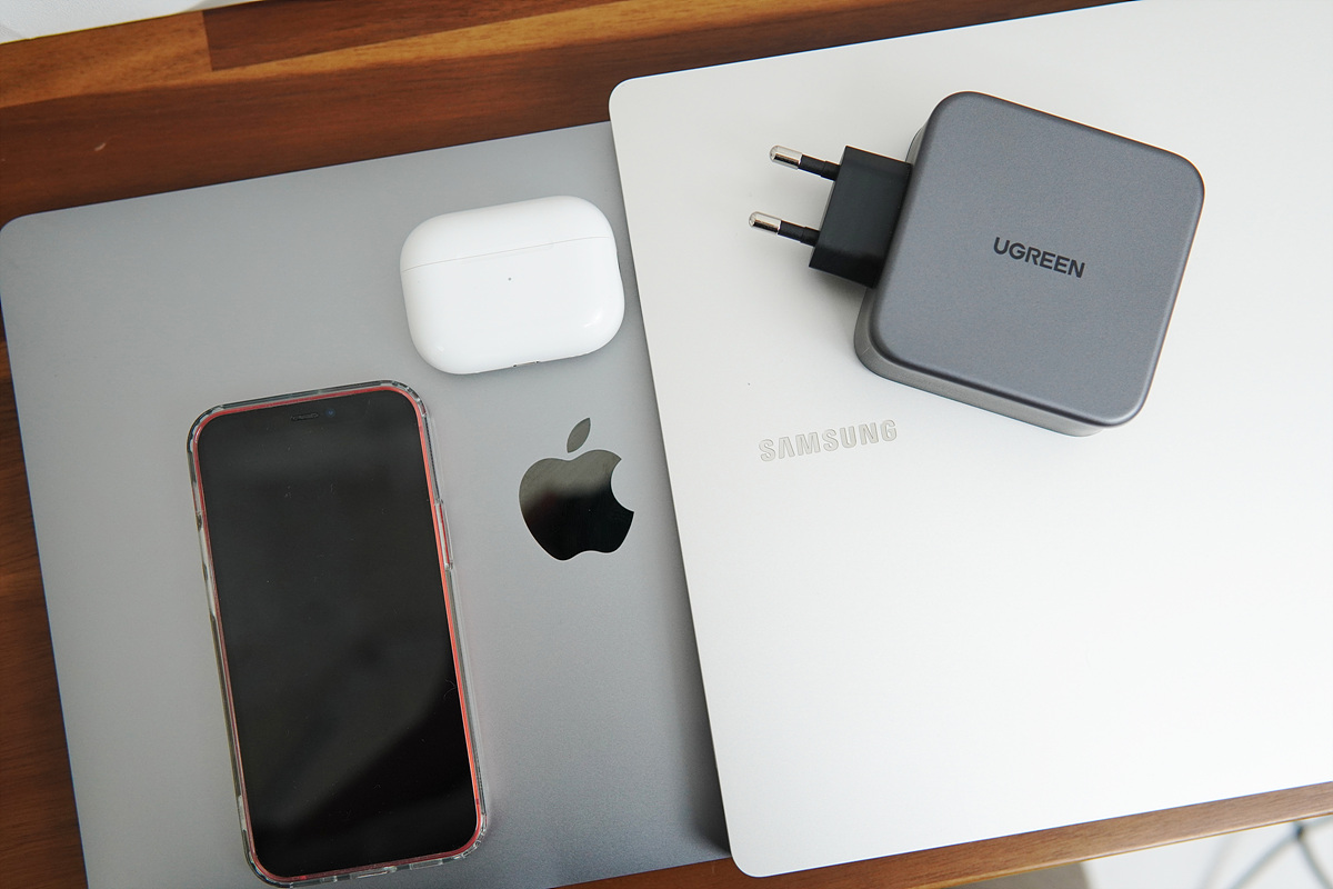 스마트폰, 태블릿뿐 아니라 노트북에서도 PD(Power Delivery) 충전이 기본으로 자리를 잡으면서 멀티 충전기는 이제 필수품이 되었습니다. 이런 멀티 충전기는 사용할 수 있는 포트(port)의 개수뿐 아니라 Type-C / A가 몇 개인지 그리고 각각의 포트별 출력(W : 와트)이 어느 정도인지도 잘 따져봐야 됩니다. 이번 시간에 소개하는 유그린 멀티 충전기는 애플의 맥북 프로(MacBook Pro)뿐 아니라 요즘 대세인 갤럭시북3 사용자들에게 잘 맞는 제품으로 각각은 물론 노트북 두 대를 동시에 사용(충전)할 수 있는 출력을 가지고 있습니다.