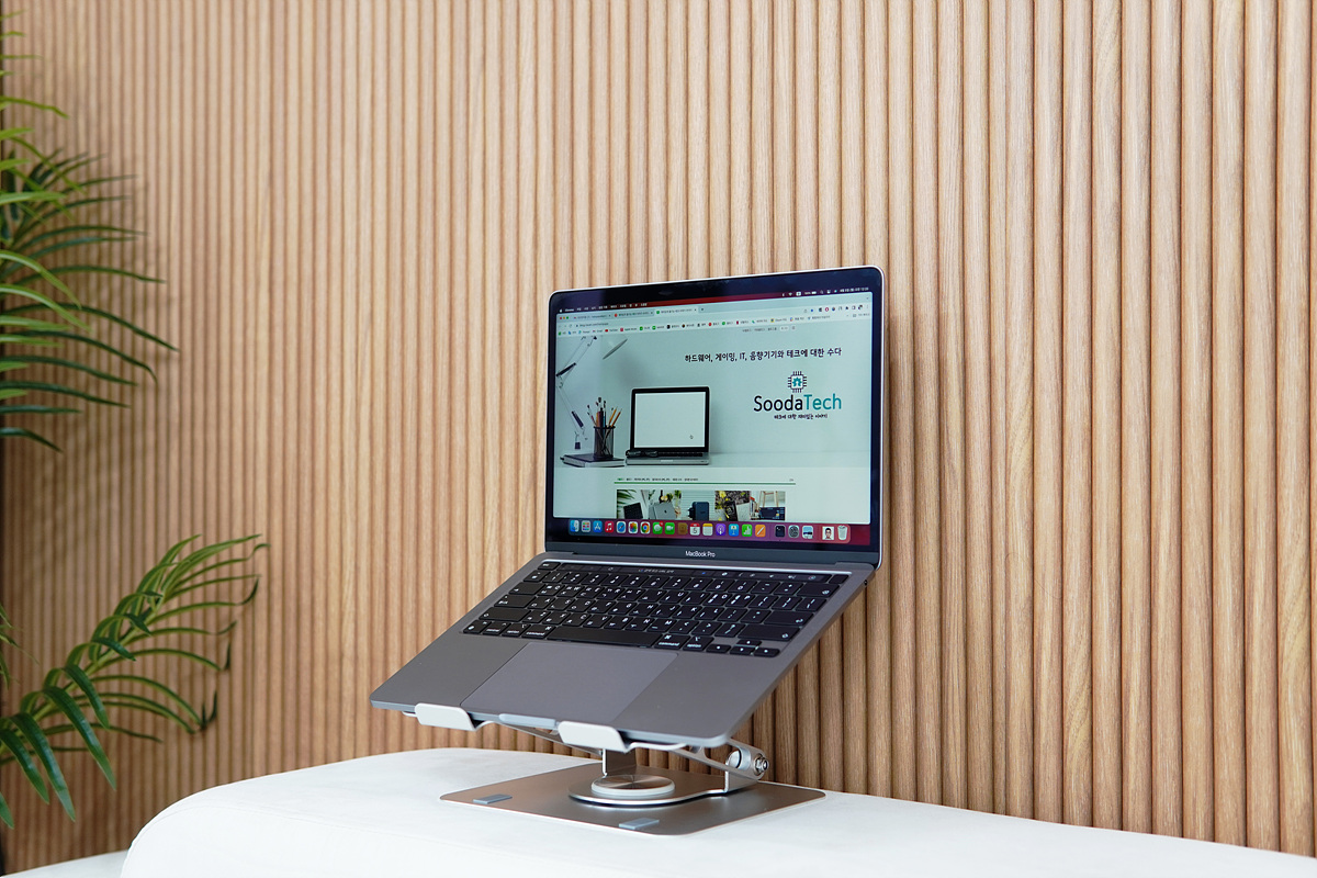 사용자의 키, 자세 그리고 사용하는 장소(책상, 테이블, 소파 등등)가 모두 달라서 노트북 스탠드를 사용할 때는 높이나 각도를 조절해야 합니다. 대부분의 노트북 스탠드는 이렇게 두 가지로만 조절하게 되지만 슬로 노트북 스탠드는 추가로 노트북의 방향(각도)을 손쉽게 조절할 수 있는 특별한 기능을 가지고 있습니다. 일반적인 스탠드와 비교해도 가격차이가 크지 않아서 이런 기능이 필요한 사용자는 유용하게 사용할 수 있겠죠. 래칫 구조로 인해 스탠드를 회전할 때 들리는 딸각하는 소리에서는 호불호가 나뉠 수 있겠지만 도서실 같은 조용한 환경이 아닌 일반적인 가정이나 사무실에서는 크게 문제가 되지는 않을 거라 생각합니다.