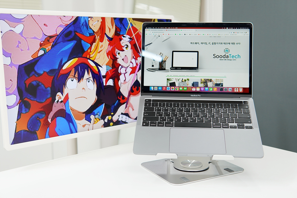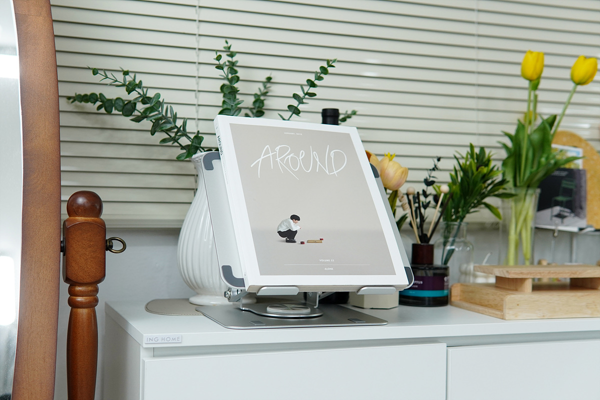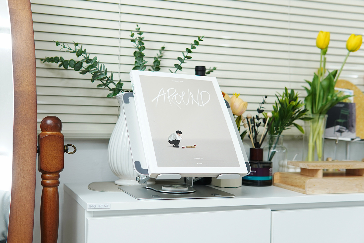 앞서 언급한 것처럼 최대 10kg의 하중까지 견딜 수 있기 때문에 노트북뿐 아니라 독서대나 태블릿 거치대로서도 충분히 사용할 수 있습니다. 태블릿 거치대로 사용할 때 역시 회전 기능은 제법 유용하게 사용이 됩니다.