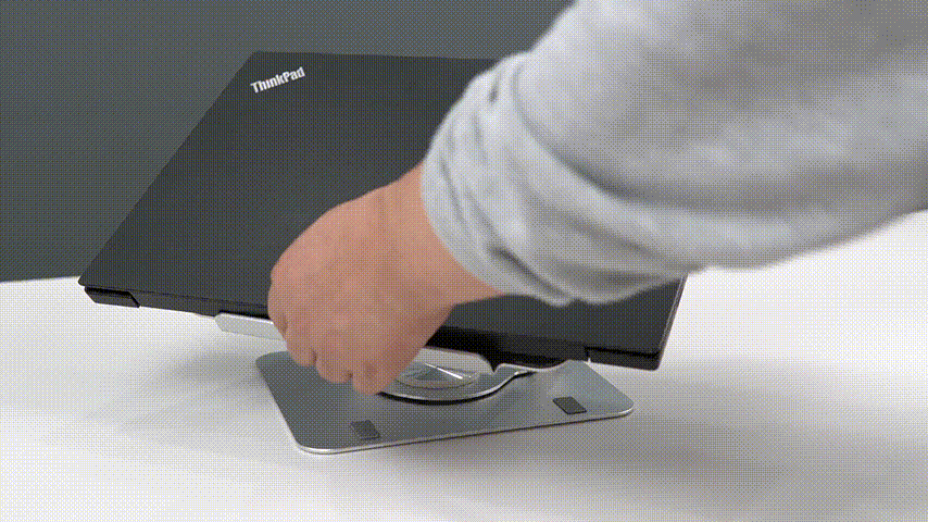 각도를 틀어야 할 때는 노트북과 스탠드를 들어서 바꿀 필요 없이 편리하게 회전을 할 수 있습니다. 회전할 때는 일정 각도마다 걸림이 있는 래칫 방식으로 조절이 되며 이때는 딸각하는 소리가 나서 이 부분은 호불호가 나뉠 거 같습니다. (아래 영상에서 다시 다루도록 하겠습니다.)