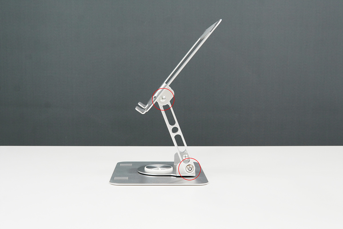 두 개의 관절을 통해 스탠드의 높이와 각도를 조절할 수 있습니다.