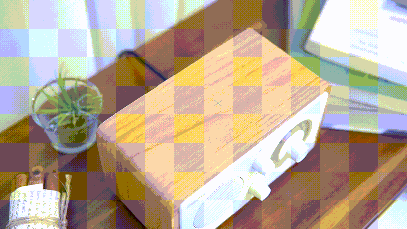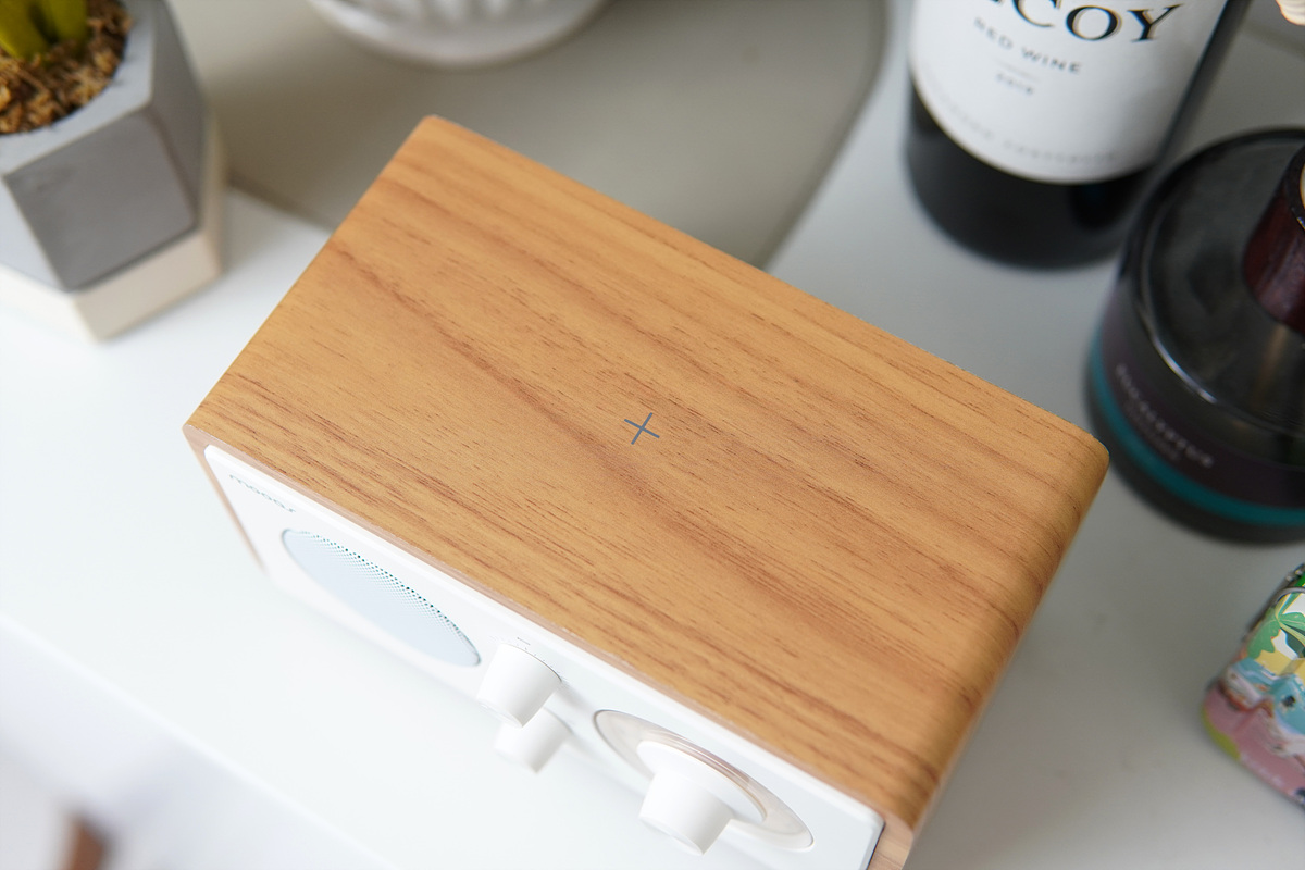 스피커의 전체적인 디자인부터 볼륨이나 라디오 주파수를 바꿀 수 있는 조절 노브의 감도는 정말 100점을 주고 싶을 정도로 만족도가 높았습니다. 추가로 은은하게 밝혀지는 노란빛의 조명은 무드등의 역할도 하고 무선 충전의 부가 기능은 활용도가 높아서 책상뿐 아니라 침대 옆 협탁이나 머리맡에 두고 사용하기에도 좋았습니다.