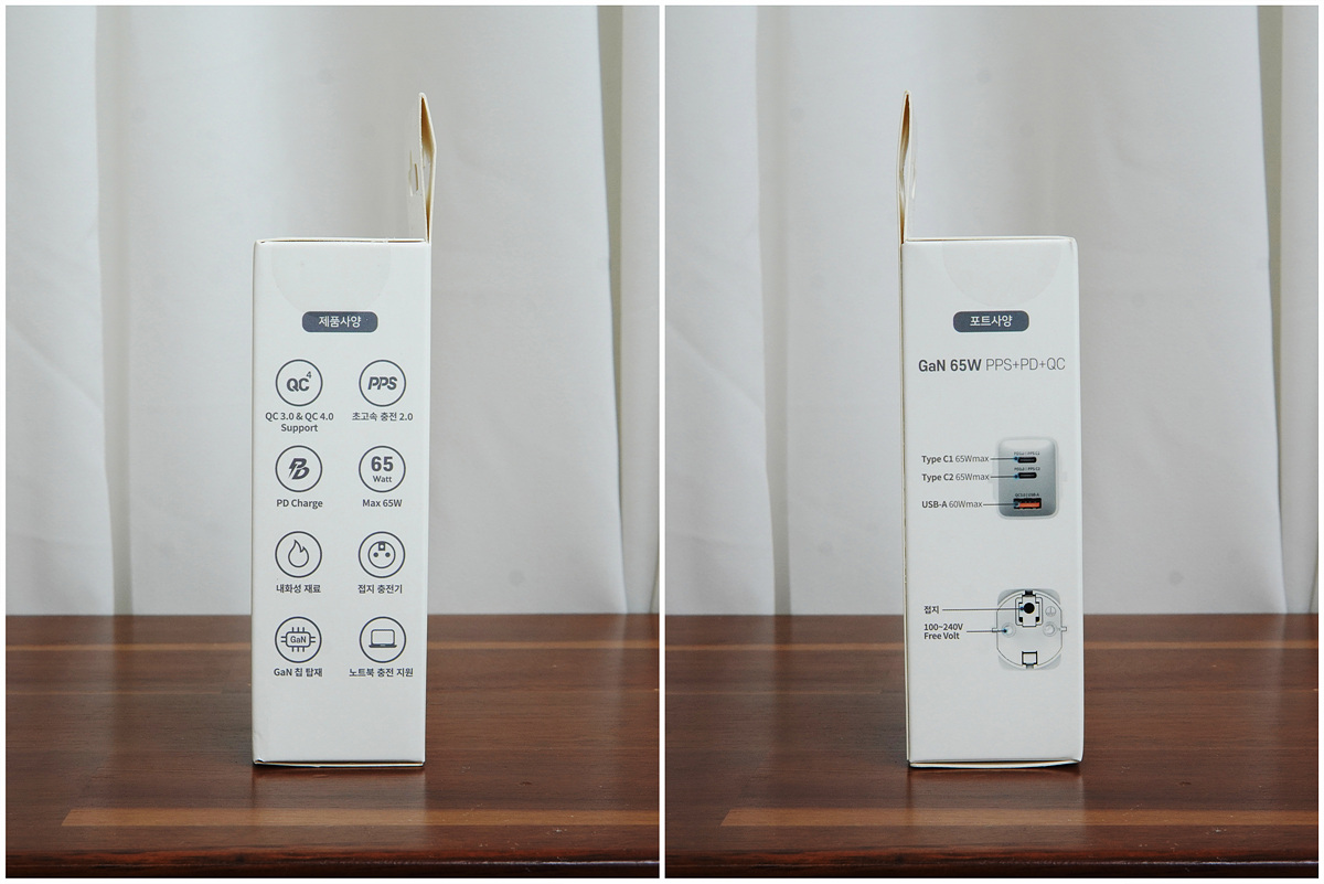 구성품은 따로 없고 없고 충전기 하나만 포함이 되어 있어서 별도의 설명서 대신 박스에 충전기의 스펙이나 기능들이 자세하게 안내되어 있습니다.