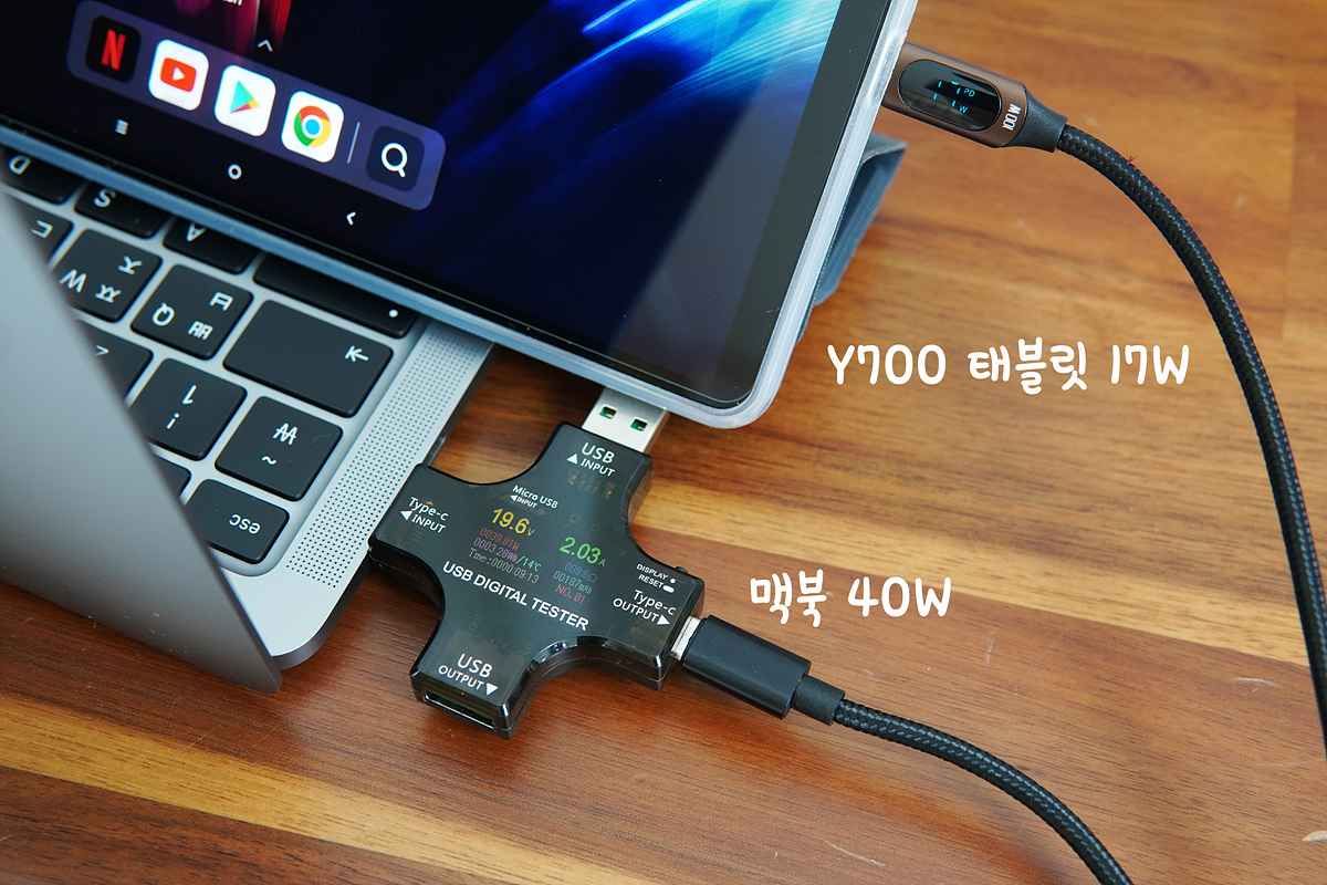 레노버 Y700은 태블릿의 최댓값인 45W의 충전 속도를 보여주었습니다. (터보 차징)