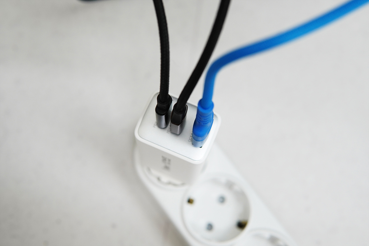 3개의 충전 포트를 모두 사용하면 C2 출력이 조금 더 줄어들지만(최대 20W -> 10W) 아이폰 & 에어팟 프로2까지 모든 기기를 충전할 수 있습니다. 3포트 모두 사용할 경우 전체 출력(W)에서 배분되기에 전체적으로 충전 속도는 조금씩 떨어지지만 최대 4대의 기기(노트북, 태블랏, 스마트폰, 스마트기기)를 사용하는 데는 아무런 문제가 없었습니다. 노트북의 경우 출력이 작으면 충전 속도가 떨어지는 게 아닌 충전이 아예 안 되는 경우가 있으니 맥북이나 갤럭시북 프로같은 노트북 충전은 꼭 C1 포트에 연결을 해야 합니다.