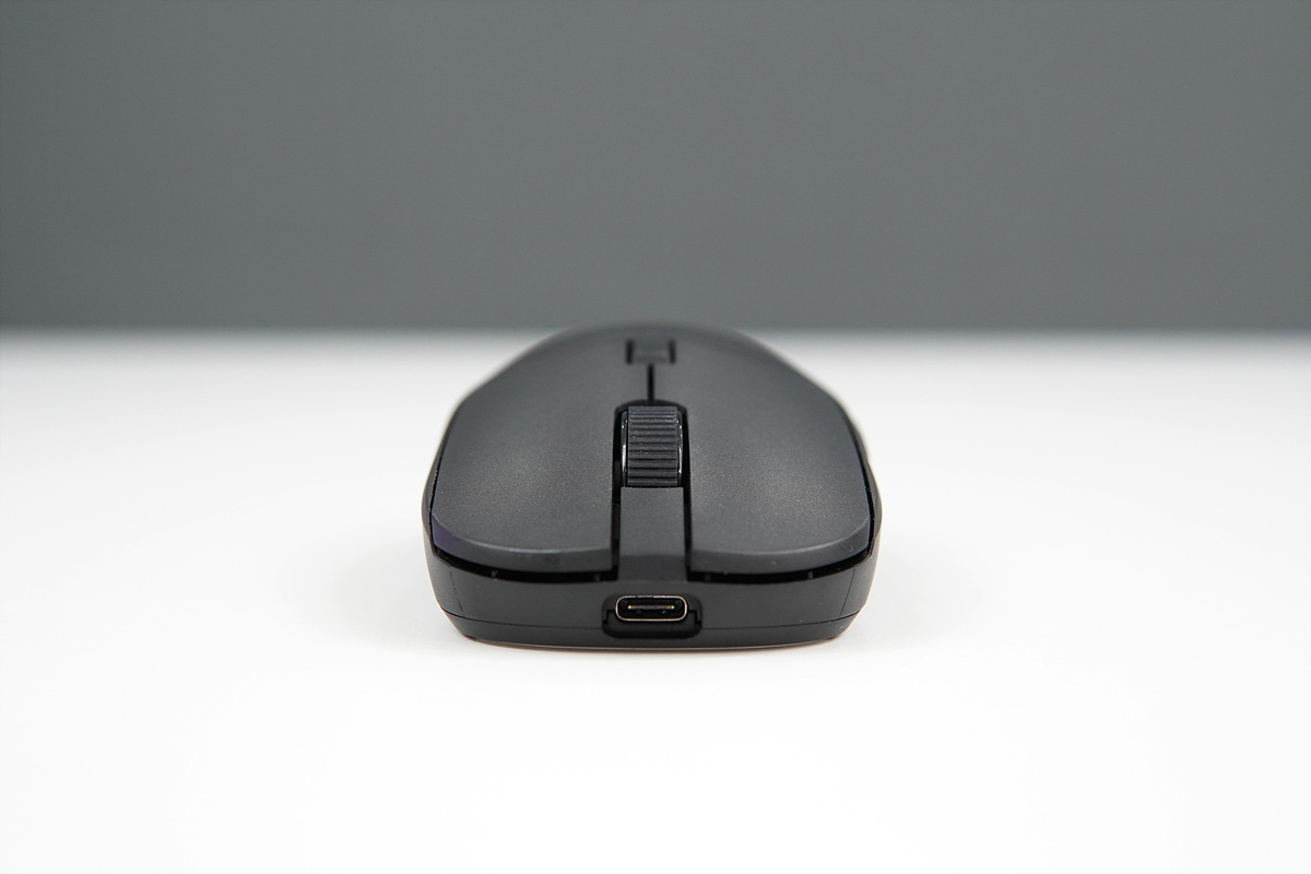 마우스는 좌우 대칭형으로 되어있으며 앞쪽에는 충전이나 유선으로 사용할 수 있는 Type-C 포트가 있습니다. 전체적인 모습이나 크기를 보면 팜 그립보다는 클로우와 핑거 그립에 조금 더 잘 맞을 거라 생각합니다. 개인적으로 좌/우 비대칭형 방식을 좋아하는데 같은 스펙이나 기능으로 후속 제품이 나오면 좋을 거 같습니다. 그동안 TITAN 시리즈를 생각한다면 충분히 가능할 거 같습니다. ^^