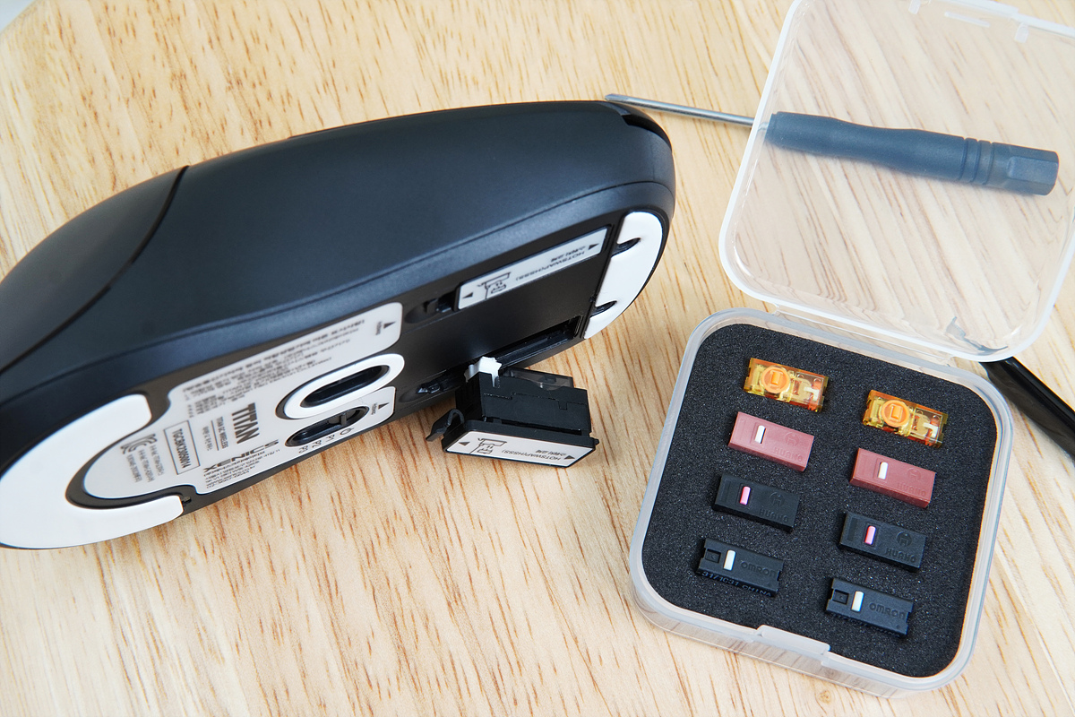 마우스의 브랜드나 제품 그리고 가격대를 불문하고 가장 많이 발생되는 문제는 더블클릭이나 드래그 풀림 등과 같은 좌우 클릭 스위치의 불량이죠. TITAN GC는 이런 스위치를 불량을 아주 손쉽게 해결할 수 있도록 사용자가 직접 스위치를 교체할 수 있는 구조로 되어있습니다. 기계식 키보드에서는 이런 핫스왑 방식이 아주 일반적인 방식이지만 마우스 쪽에서는 아직까지 이런 방식을 사용하는 제품은 한 손으로 꼽을 수 있을 만큼 적은 편입니다. 기존 타이탄 시리즈에 핫스왑 방식의 새로운 기능들이 추가된 TITAN GC는 어떤 모습일지 자세하게 살펴보겠습니다.