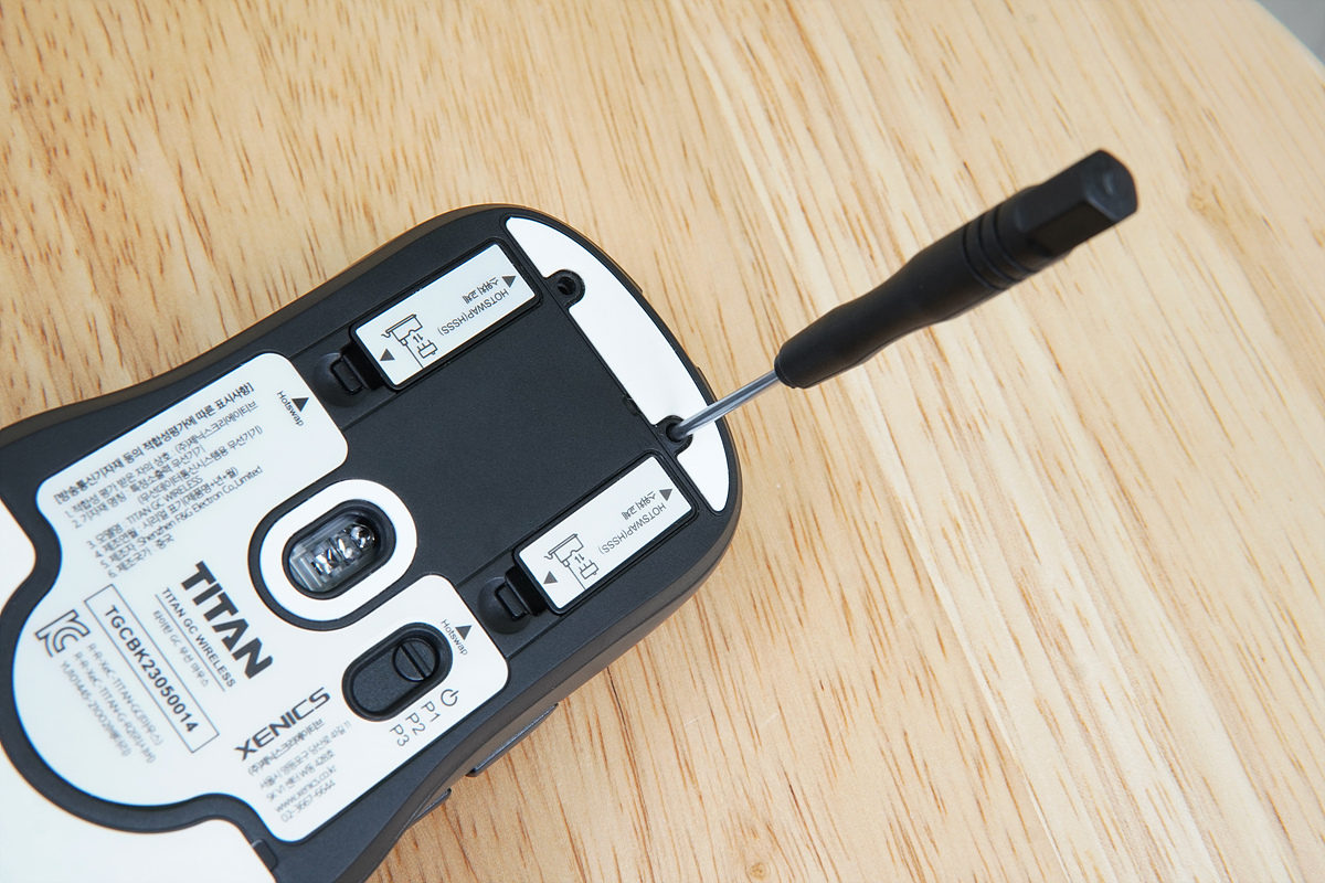 사용자가 쉽게 스위치를 교체할 수 있다는 점과 바닥에 있는 나사를 통해 클릭되는 지점의 높이를 조절하는 부분은 제닉스 TITAN GC 무선 게이밍 마우스의 가장 큰 특징이자 장점이죠. 저는 여기에 추가로 기존에 타이탄 시리즈의 장점을 모아놓은 부분들도 이 두 가지 못지않은 장점이라고 생각합니다.