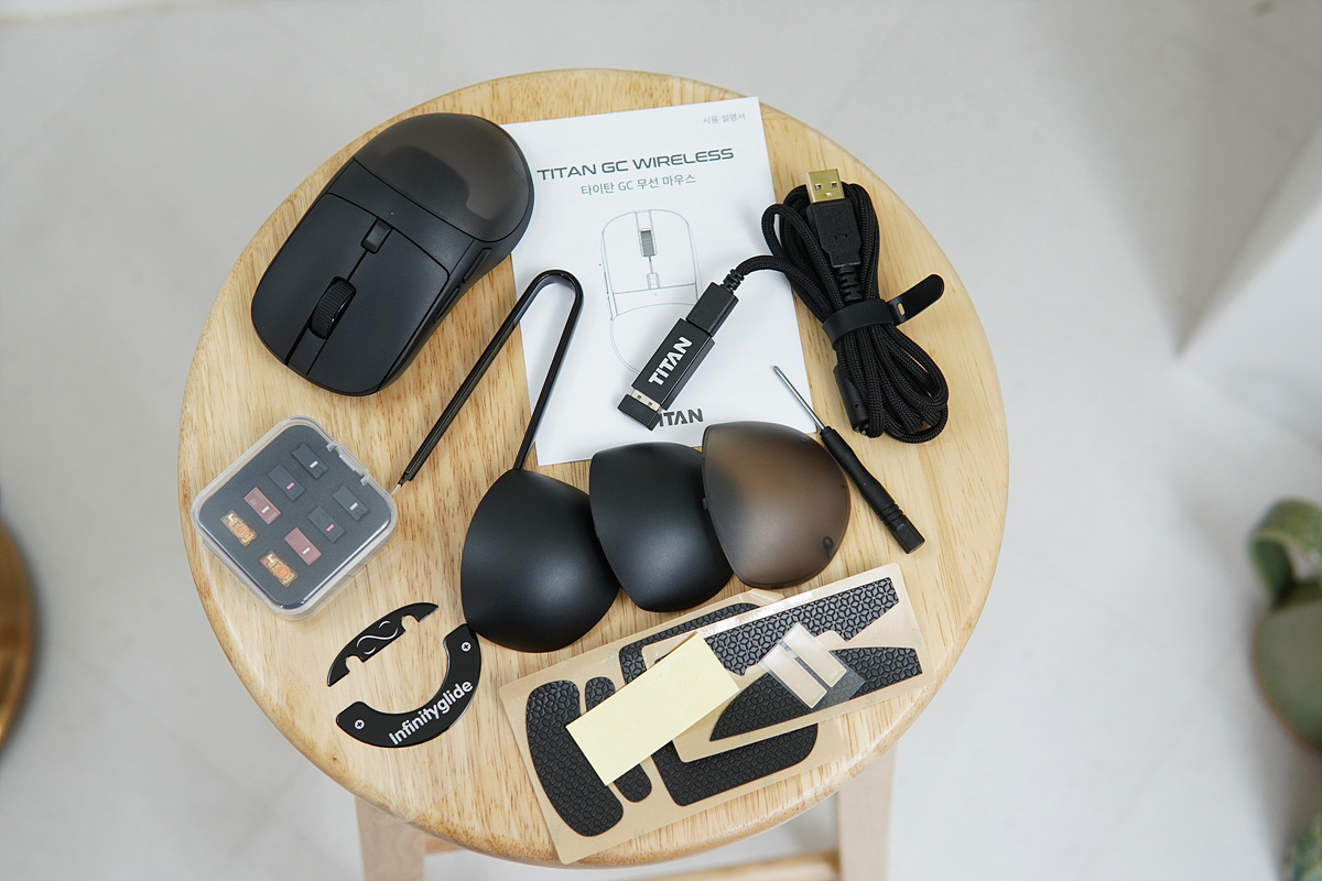 기존에도 스위치를 교체할 수 있는 제품이 있었지만 이렇게 여러 가지 스위치를 넣어주는 건 아마도 TITAN GC가 처음인 거 같습니다. 스위치뿐 아니라 스페이서 같은 부품들을 본다면 단순히 불량에 따른 대처보다는 사용자가 원하는 방향으로 마음껏 튜닝을 하라는 의도라 생각됩니다. 소비자로서는 아주 환영할만한 부분이죠. 예전과는 다르게 마우스 스위치를 구매가 쉬워지긴 했지만 이렇게 다양한 스위치가 있으면 따로 구매하기 전에 자신의 취향을 확인할 수 있으니 더더욱 칭찬해주고 싶은 부분입니다.