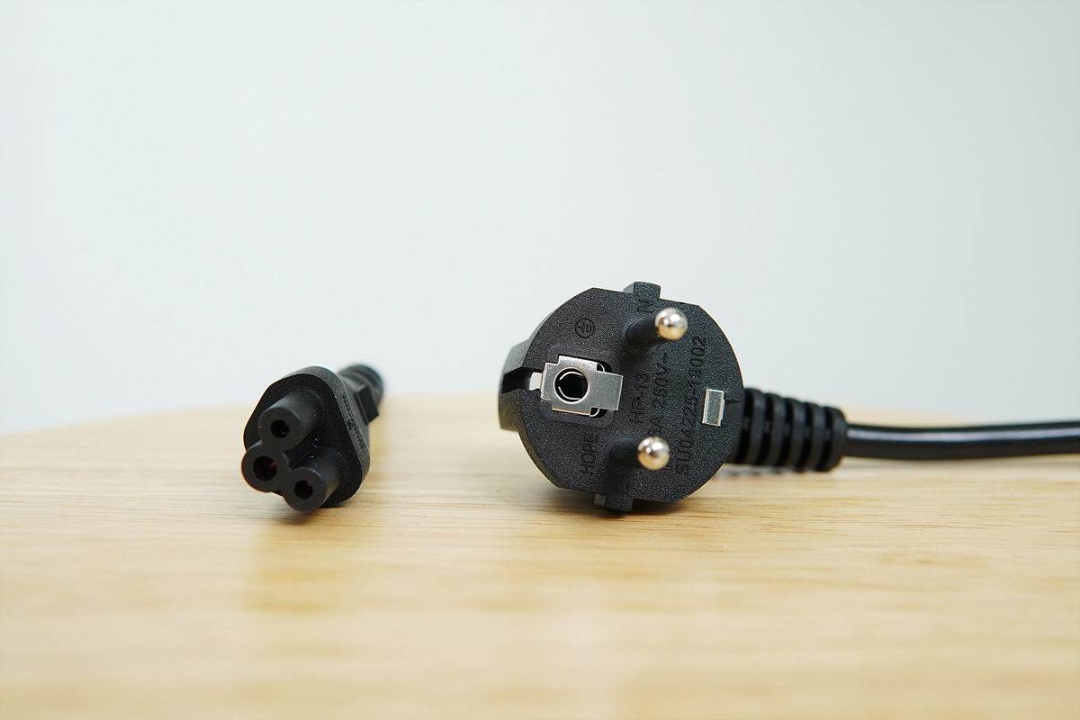 클로버 3구라고 부르는 전원 케이블로 되어있어서 접지를 지원하고 있습니다. 충전기는 다른 기기들에 비해 접지되는 제품들의 보급이 좀 늦게 이루어졌는데 전자 기기에서 접지는 가장 중요한 부분 중 하나로 기기의 보호뿐 아니라 충전할 때 느껴지는 정전기와 터치 오류를 방지할 수 있습니다. gram 같은 마그네슘 재질의 노트북에서는 괜찮지만 맥북이나 갤럭시북3 같이 알루미늄 바디로 된 노트북을 충전할 때 느껴지는 정전기는 꽤 거슬리거든요.