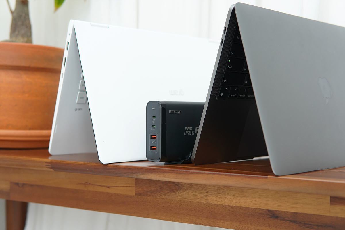 일반적으로 많이 사용하는 멀티 충전기의 경우 노트북 한대와 2-3대의 스마트 기기를 충전할 수 있지만 이번에 소개하는 비잽의 멀티 충전기는 노트북 두 대를 동시 충전할 수 있는 245W의 높은 출력을 자랑하고 있습니다. 예전과 달리 이제는 스마트폰도 45W의 초고속 충전을 지원하는 만큼 굳이 노트북이 아니더라도 최신 스마트폰이나 태블릿을 여러 대 사용하는 사용자에게 빠른 속도를 지원하는 충전기는 필수품이라고 할 수 있죠.
