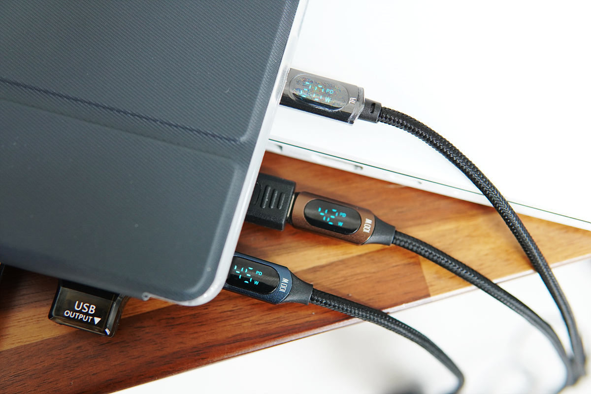 맥북 프로와 Y700 태블릿 충전 역시 빠르게 진행이 됩니다. 레노버 Y700 태블릿 충전이 45W 알고 있었는데 50W까지 지원이 되네요. Y700 태블릿의 배터리 소모가 좀 빠른 편이라 높은 출력의 충전기는 필수입니다.