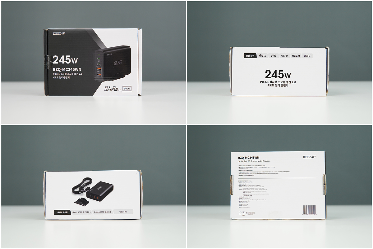 일반적으로 많이 사용하는 멀티 충전기의 경우 노트북 한대와 2-3대의 스마트 기기를 충전할 수 있지만 이번에 소개하는 비잽의 멀티 충전기는 노트북 두 대를 동시 충전할 수 있는 245W의 높은 출력을 자랑하고 있습니다. 예전과 달리 이제는 스마트폰도 45W의 초고속 충전을 지원하는 만큼 굳이 노트북이 아니더라도 최신 스마트폰이나 태블릿을 여러 대 사용하는 사용자에게 빠른 속도를 지원하는 충전기는 필수품이라고 할 수 있죠.