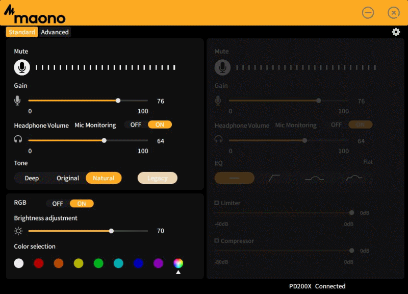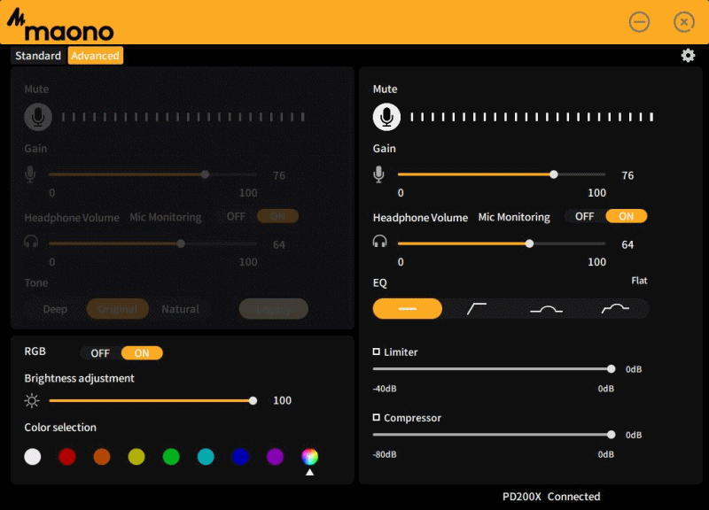 어드밴스드 모드에서는 리미터와 컴프레서를 사용할 수 있지만 세부 설정을 할 수 없고 성능도 그리 좋은 편은 아니라서 DAW나 동영상 편집 프로그램에서 따로 필터를 사용하는 걸 추천합니다.