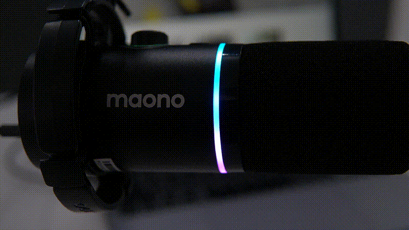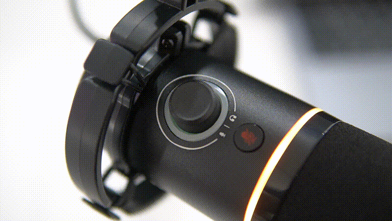 마이크의 노브는 래칫 방식으로 구분감이 있게 돌아가며 클릭으로 마이크 게인(초록색) / 헤드폰 출력(파란색)을 조절할 수 있습니다. 두 가지 모두 크기에 따라서 LED의 밝기로 수치를 확인할 수 있으며 마이크 음소거 버튼을 누르면 노브의 LED는 빨간색으로 바뀝니다.