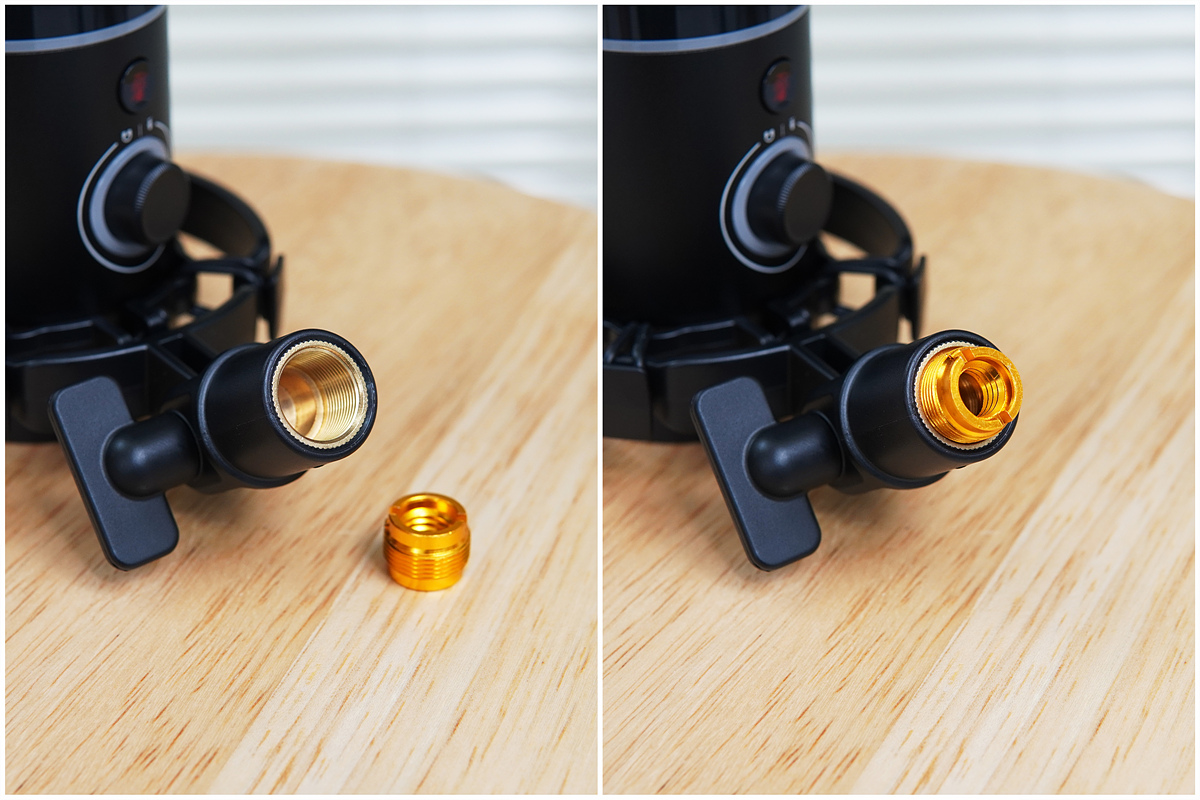사용하려는 마이크 암이나 스탠드에 따라 변환 어댑터(소켓)를 사용할 수 있습니다.