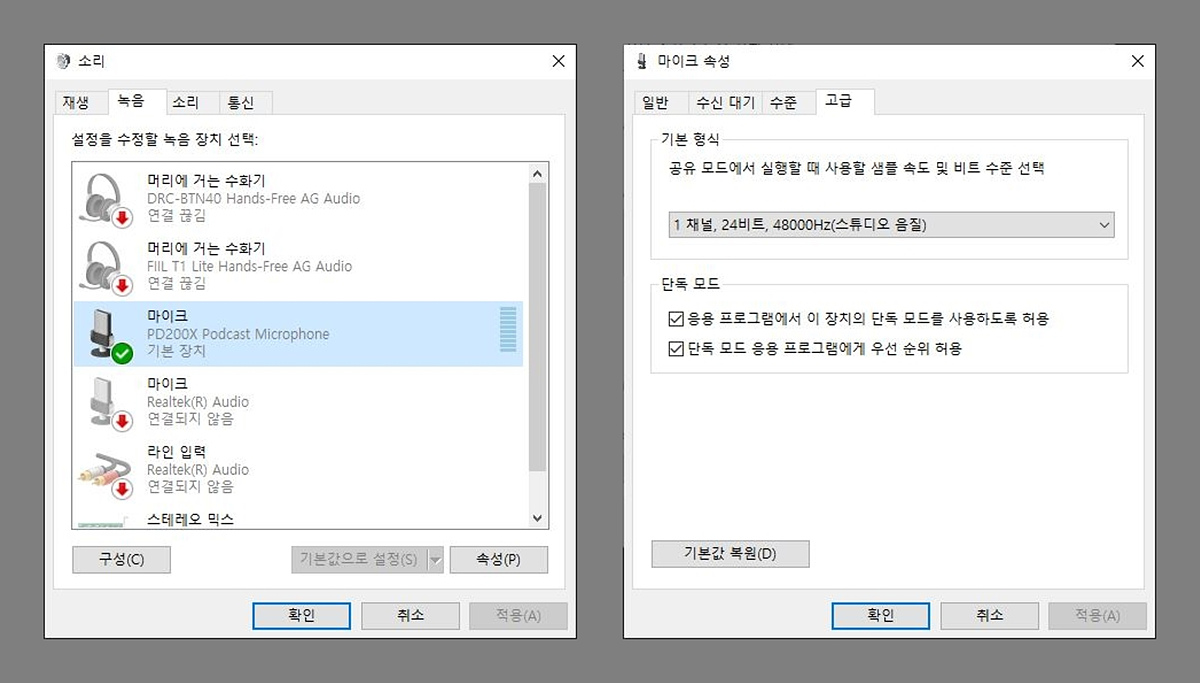 맥북이나 Windows 모두 USB 케이블을 연결하면 PD200X를 확인과 사용이 가능합니다.