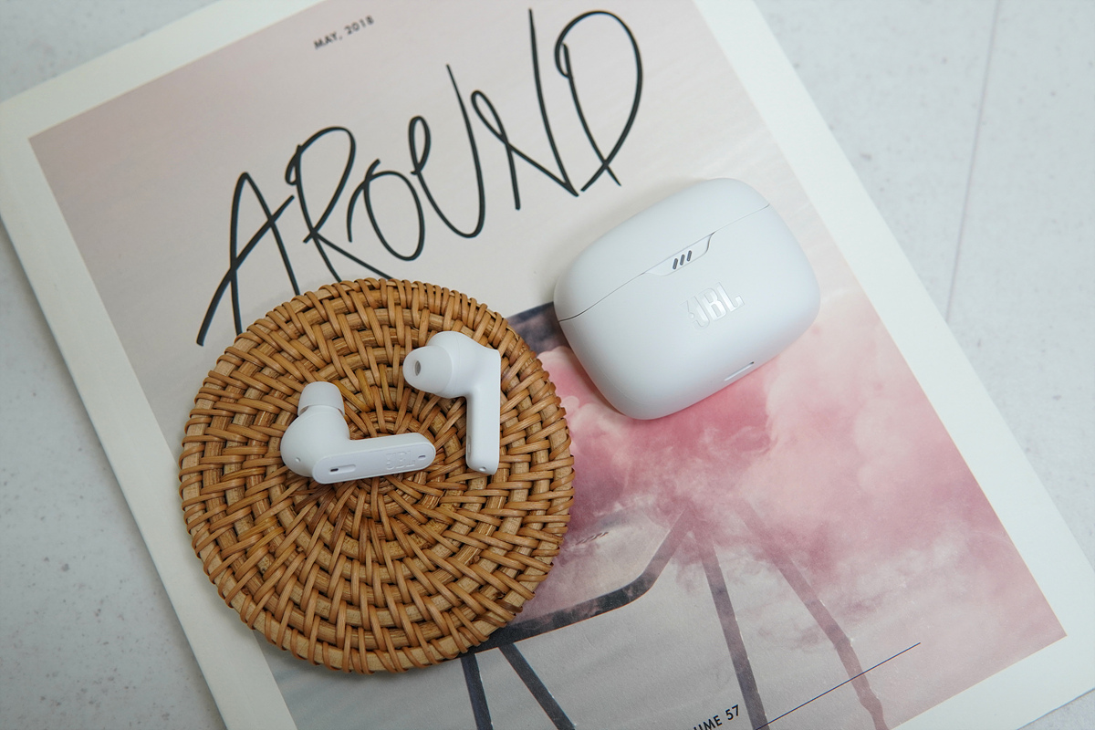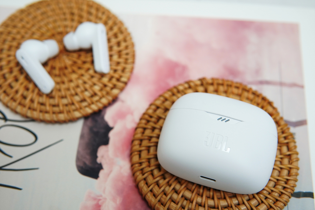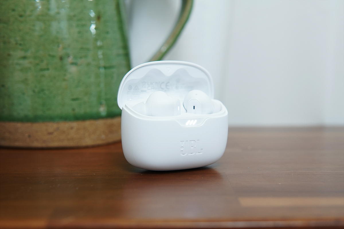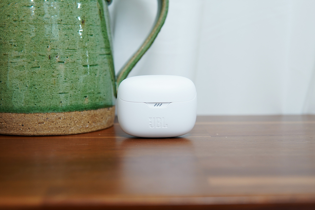 TUNE BEAM은 블랙 / 블루 / 화이트 세 가지 컬러가 있는데 저는 화이트가 제일 깔끔하고 좋아 보이더군요. 충전 케이스는 요즘 출시되는 제품들과 비교하면 조금 큰 편입니다.