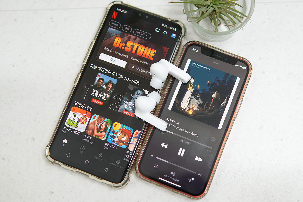 JBL TUNE BEAM 블루투스 이어폰은 10만 원 미만의 보급형으로 자신의 위치에서 할 수 있는 것들을 아주 잘하고 있는 똑똑한 제품이라고 할 수 있습니다. 사용자 편의를 위한 여러 가지 기능들이 많으면 당연히 좋겠지만 제품의 가격을 생각한다면 모든 걸 다 잘할 수 없겠죠. 그래서 자신이 할 수 있는 것과 없는 걸 구분해서 자신이 할 수 있는 기능들을 똑똑하게 잘 수행하고 있었습니다. 무선 충전이 안 되는 점과 반박자정도 느린 터치감이 아쉽긴 했지만 ANC와 많은 사용자들에게 어필할 수 있는 소리까지 생각한다면 보급형이지만 듣보잡 제품을 꺼리는 사용자들에게는 좋은 선택지가 될 거라 생각합니다.