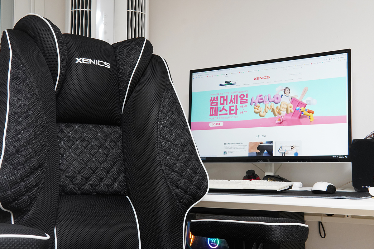 제닉스 아레나 프라임 메쉬 체어의 가장 큰 특징이자 장점은 큰 사이즈로 온몸을 감싸주는 듯한 푹신함과 함께 허리와 바닥면은 단단하게 지지해 주는 이 두 가지의 조화라고 생각됩니다. 단맛과 짠맛이 잘 조화된 음식을 먹는 느낌이라 상당히 좋았습니다. 더운 여름을 시원하게 보낼 수 있도록 몸이 닿는 모든 부분이 메쉬로 되어 있는 부분 역시 상당히 인상적이었습니다. 사장님 포스가 느껴지는 크기가 조금 부담이 되긴 하겠지만 어느 정도 공간이 확보만 된다면 디자인이나 기능 모두 만족스러운 제품이었습니다.