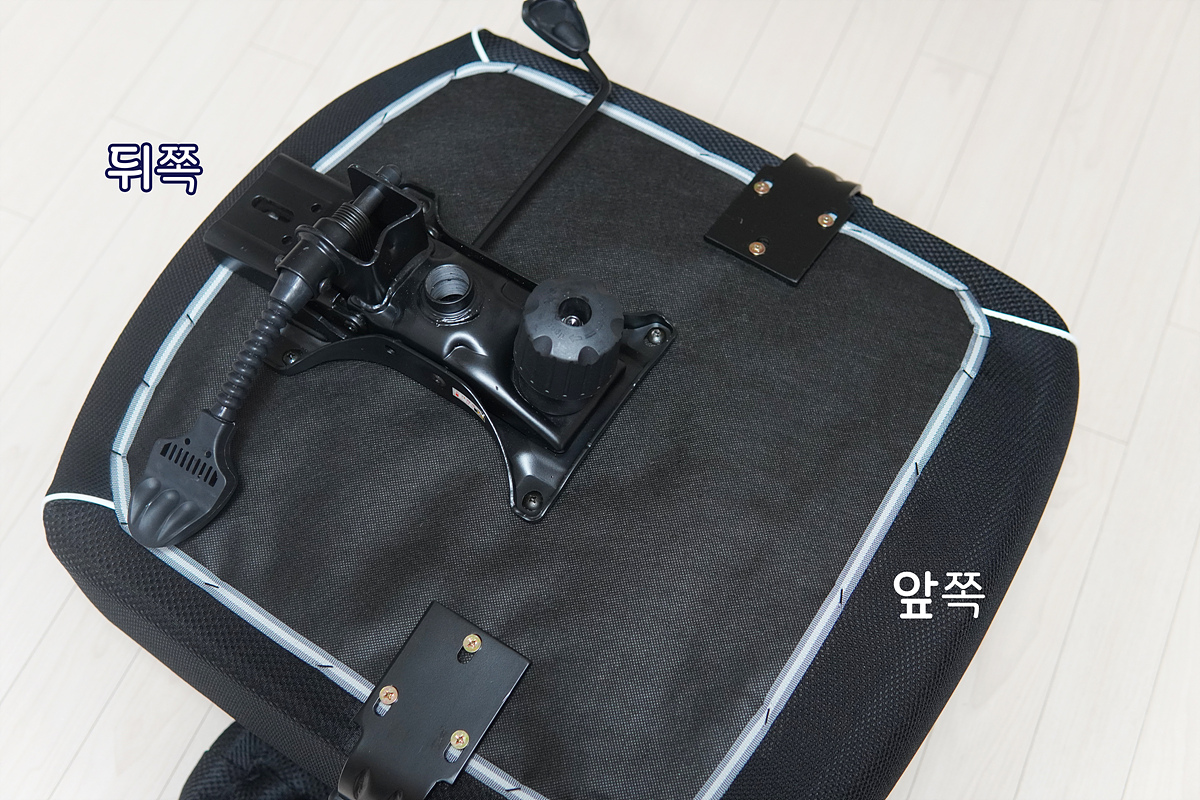 등판은 두 개의 너트로 고정을 하면 모든 조립이 완성입니다. 저는 사진을 찍느라 5분 정도 걸린 거 같은데 실제 조립은 1-2분이면 가능하고 의자를 바로 세울 때 의자의 크기와 무게가 조금 버겁기는 하겠지만 주의해서 한다면 여자들도 혼자서 조립이 가능하리라 생각합니다.