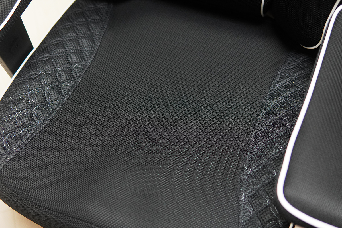디자인적으로는 큰 볼륨과 메쉬로 되어있는 구조가 인상적이었다면 실제로 앉았을 때는 쿠션감이 상당히 인상적이었습니다. 헤드레스트, 양쪽 날개 부분, 허리를 지지하는 부분과 바닥까지 모든 곳의 쿠션감이 다르게 적용이 되었더군요. 푹신푹신한 쿠션이 필요한 부분과 단단하게 지지해야 될 부분을 모두 만족시켜 주는 기능으로 개인적으로는 메쉬 재질보다 차별화된 쿠션감이 가장 마음에 들었습니다. 푹신함과 단단한 고정감 두 가지는 서로 반대되는 느낌인데 두 가지를 적절하게 잘 섞어서 완성한 느낌이었습니다.
