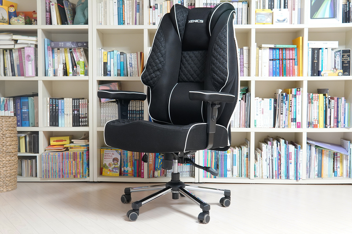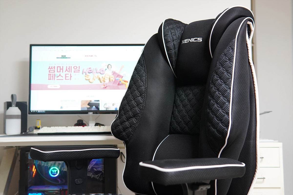 제닉스 아레나 프라임 메쉬 체어의 가장 큰 특징이자 장점은 큰 사이즈로 온몸을 감싸주는 듯한 푹신함과 함께 허리와 바닥면은 단단하게 지지해 주는 이 두 가지의 조화라고 생각됩니다. 단맛과 짠맛이 잘 조화된 음식을 먹는 느낌이라 상당히 좋았습니다. 더운 여름을 시원하게 보낼 수 있도록 몸이 닿는 모든 부분이 메쉬로 되어 있는 부분 역시 상당히 인상적이었습니다. 사장님 포스가 느껴지는 크기가 조금 부담이 되긴 하겠지만 어느 정도 공간이 확보만 된다면 디자인이나 기능 모두 만족스러운 제품이었습니다.