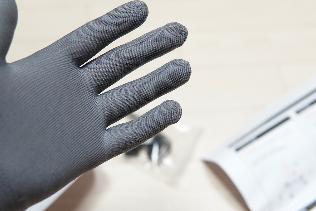 의자가 메쉬라 그런지 장갑도 시원한 메쉬 형태로 되어있습니다. 손이 아주 큰 분들이 아니라면 대부분 사용자에게 잘 맞을 거 같네요. 저는 손바닥이 크고 손가락이 짧은 체형이라 손가락은 좀 남았습니다. ^^