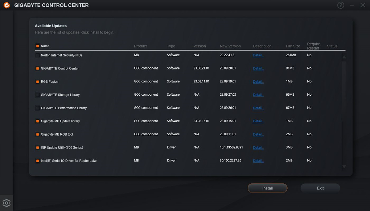 GCC의 첫 번째 항목에서는 메인보드의 칩셋 드라이버와 RGB 등 관련 소프트웨어를 선택해서 설치할 수 있습니다. 요즘은 CD-ROM이 있는 PC를 찾기가 더 어려우니 이런 방법이 더 편하겠죠.