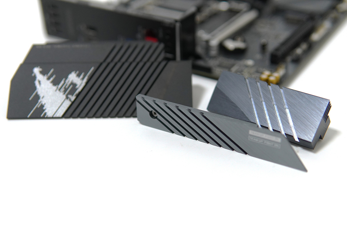 PCIe, M.2 슬롯은 각각 두 개씩 배치되어 있고 M.2는 모두 PCIe 4.0 SSD를 사용할 수 있습니다. SSD 방열판은 M.2 1번에만 있으며 2번 슬롯은 22120까지 장착할 수 있습니다. (1번은 2280)