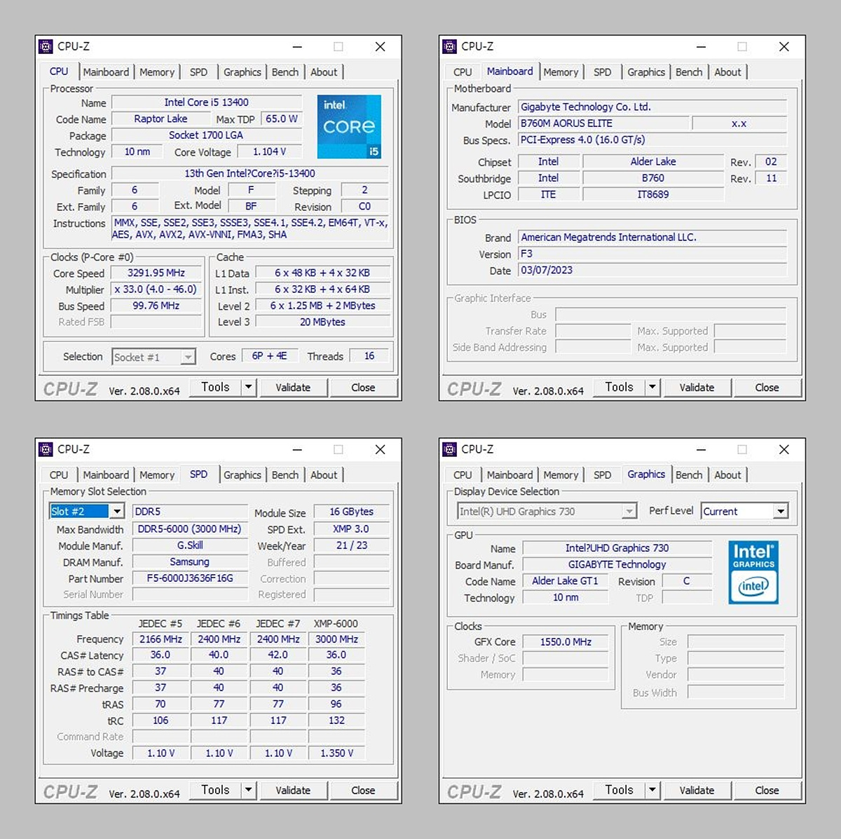 보드의 테스트는 인텔 i5-13400을 사용하였습니다.