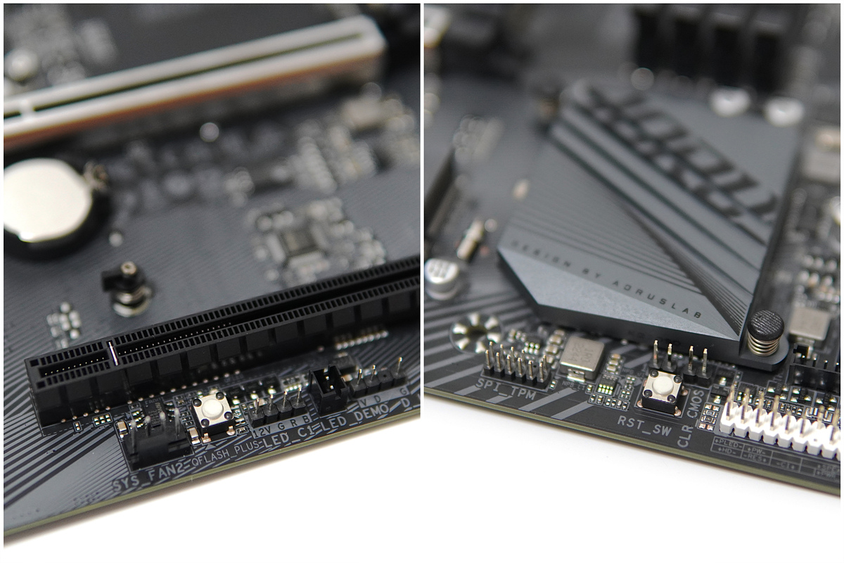 두 번째 M.2 슬롯에는 EZ Latch Plus가 적용되었는데 기존에 사용되던 EZ Latch보다 더 편리하게 그냥 SSD를 눌러만 주면 바로 장착할 수 있습니다. 나사없이 래치를 돌려서 고정하는 것도 편리했지만 Plus는 확실히 더 쉽고 빠르게 장착되며 분리할 때만 래치를 돌려주면 됩니다. (이건 정말 칭찬해주고 싶네요.)