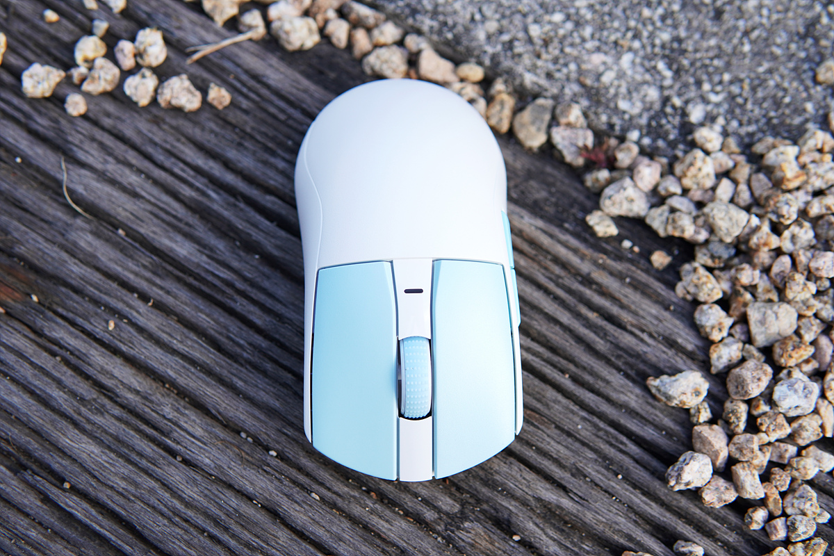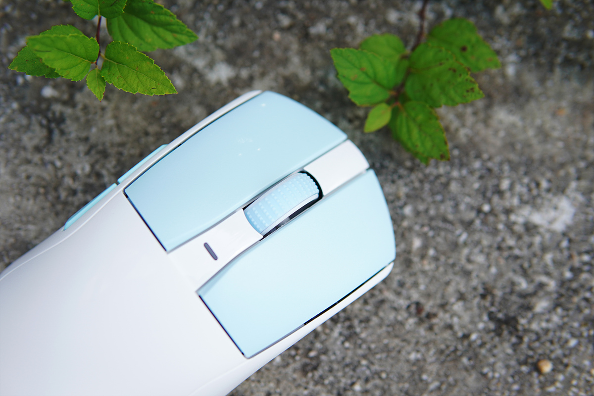 좌/우 클릭 부분은 PBT 재질이라 끈적거림이나 마우스를 오래 사용했을 때 나타나는 번들거림을 막을 수 있습니다. 마우스 상판 전체를 PBT로 했으면 좀 더 좋았겠지만 아무래도 가격적인 부분 때문에 클릭되는 부분만 적용한 거 같네요. PBT 부분은 까실함이 심하지 않아서 손바닥이 닿는 부분과 큰 차이는 없었습니다.