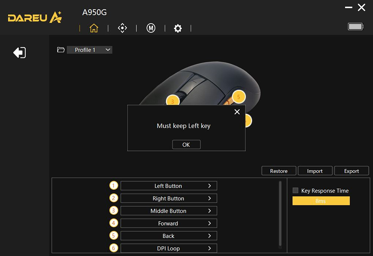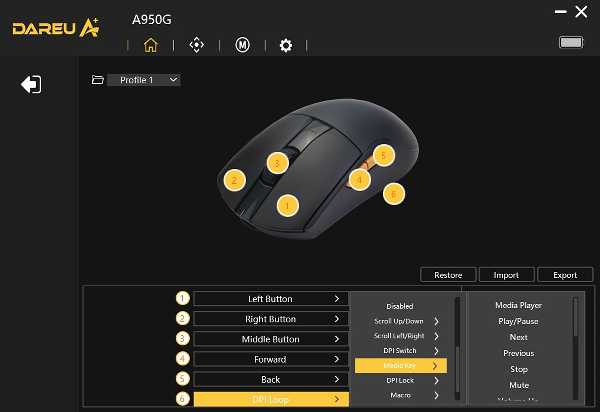 다얼유 마우스를 테스트하면서 항상 아쉬웠던 게 전용 소프트웨어가 한글 지원이 안 되는 부분이었는데 A950G 역시 한글화는 아직 이루어지지 않았네요. 사용하는데 어려운 부분이 있는 건 아니지만 그래도 국내 정발이 된 제품이라면 한글화는 필수라고 생각합니다. 추가로 각각의 제품별로 따로 설치하는 게 아닌 통합 소프트웨어로 모든 제품(키보드, 마우스)을 한 번에 관리할 수 있는 방향으로 가는 것도 좋다고 생각합니다.