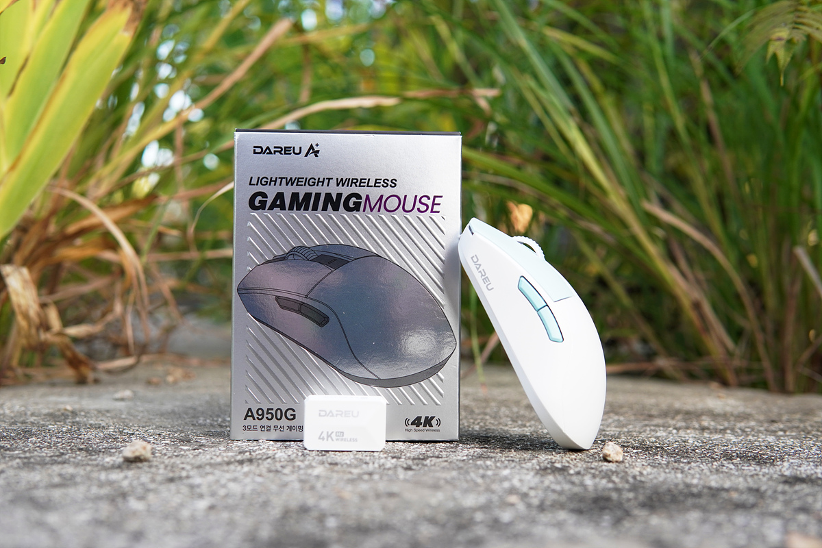 게이밍 마우스에서 가장 중요한 부분 중 하나인 센서는 상향평준화가 이루어져 더 이상 크게 주목을 받거나 차별(?)이나 구분을 하지 않게 되었습니다. 그래서인지 제조사들은 센서보다 쉘의 디자인과 무게, 연결 방식이나 부가 기능들에 대해 더욱 집중을 하고 있죠. 다양한 게이밍 기어를 공급하고 있는 다얼유(DAREU)에서도 전용 충전 독을 이용한 게이밍 마우스들을 출시해 왔는데 이번에 소개하는 A950G는 기존 마우스들과는 다르게 4k(4,000Hz) 폴링레이트와 55g의 가벼운 무게를 가지고 있습니다. (쉘의 크기는 거의 변화가 없습니다.)