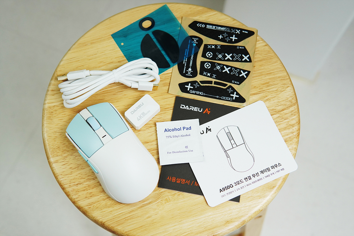 개인적으로 A950G가 좋았던 부분은 키보드(A87, A97, A104)와 같은 컬러를 적용한 부분과 좌우 클릭 부분의 PBT 재질 그리고 55g의 가벼운 무게 이 세 가지였고 가장 큰 장점은 이렇게 화려한 스펙을 가지고 있음에도 7원대의 가격이었습니다. 추가로 현재 다얼유 키보드를 사용하고 있는 분들이라면 책상 위를 더 깔끔하고 멋지게 꾸밀 수 있는 데스크테리어적인 요소로도 충분한 가치가 있겠죠. 가볍고 빠르고 예쁜 마우스인데 가격까지 착하니 가성비로는 대장급이라고 해도 충분하다고 생각합니다.