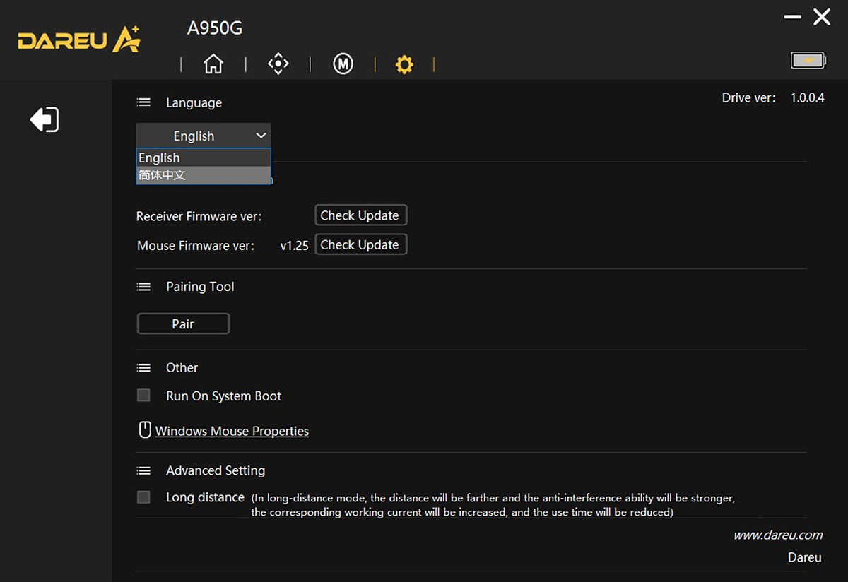 다얼유 마우스를 테스트하면서 항상 아쉬웠던 게 전용 소프트웨어가 한글 지원이 안 되는 부분이었는데 A950G 역시 한글화는 아직 이루어지지 않았네요. 사용하는데 어려운 부분이 있는 건 아니지만 그래도 국내 정발이 된 제품이라면 한글화는 필수라고 생각합니다. 추가로 각각의 제품별로 따로 설치하는 게 아닌 통합 소프트웨어로 모든 제품(키보드, 마우스)을 한 번에 관리할 수 있는 방향으로 가는 것도 좋다고 생각합니다.