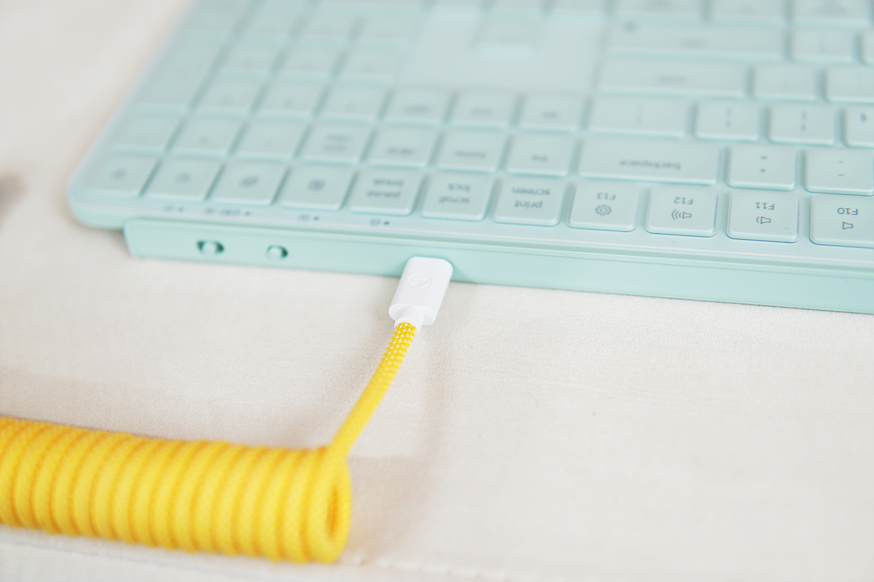 키덕들에게는 필수라고 할 수 있는 항공 케이블(코일 케이블)입니다. 색 별로 여러 개 가지고 있는데 키보드뿐 아니라 책상 위를 꾸밀 때 좋은 액세서리 중 하나입니다. (키크론 스토어에서도 판매하고 있습니다.)