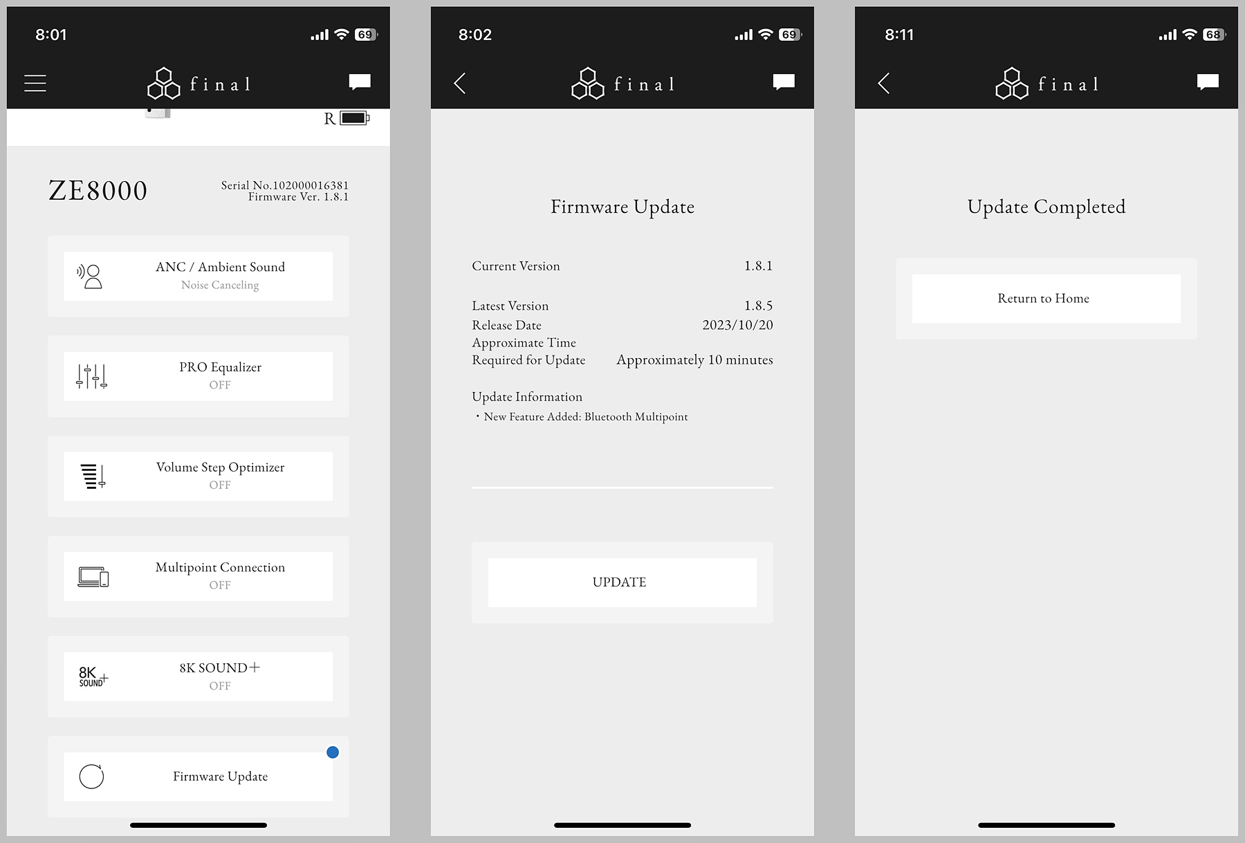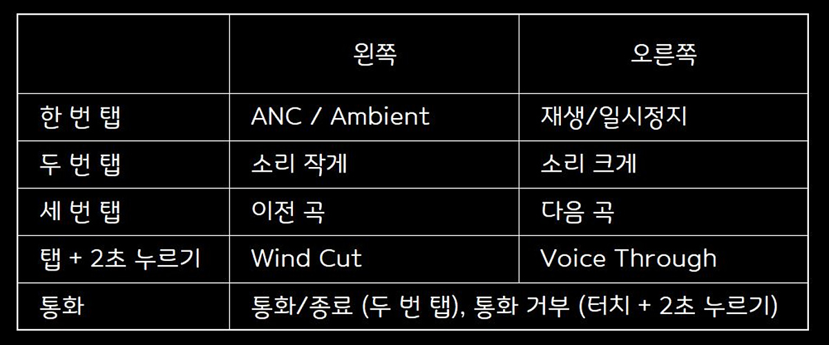 24bit / 96kHz를 사용하는 aptX Adaptive 코덱에서는 다를 수도 있겠지만 aptX, AAC 코덱에서는 업스케일링 8K Soud는 제 수준에서는 체감되지 않았습니다. 설명서와 마찬가지로 전용 앱에서도 한글을 지원하지 않는 부분과 터치 기능을 사용자가 바꿀 수 없다는 건 역시나 아쉬웠습니다.