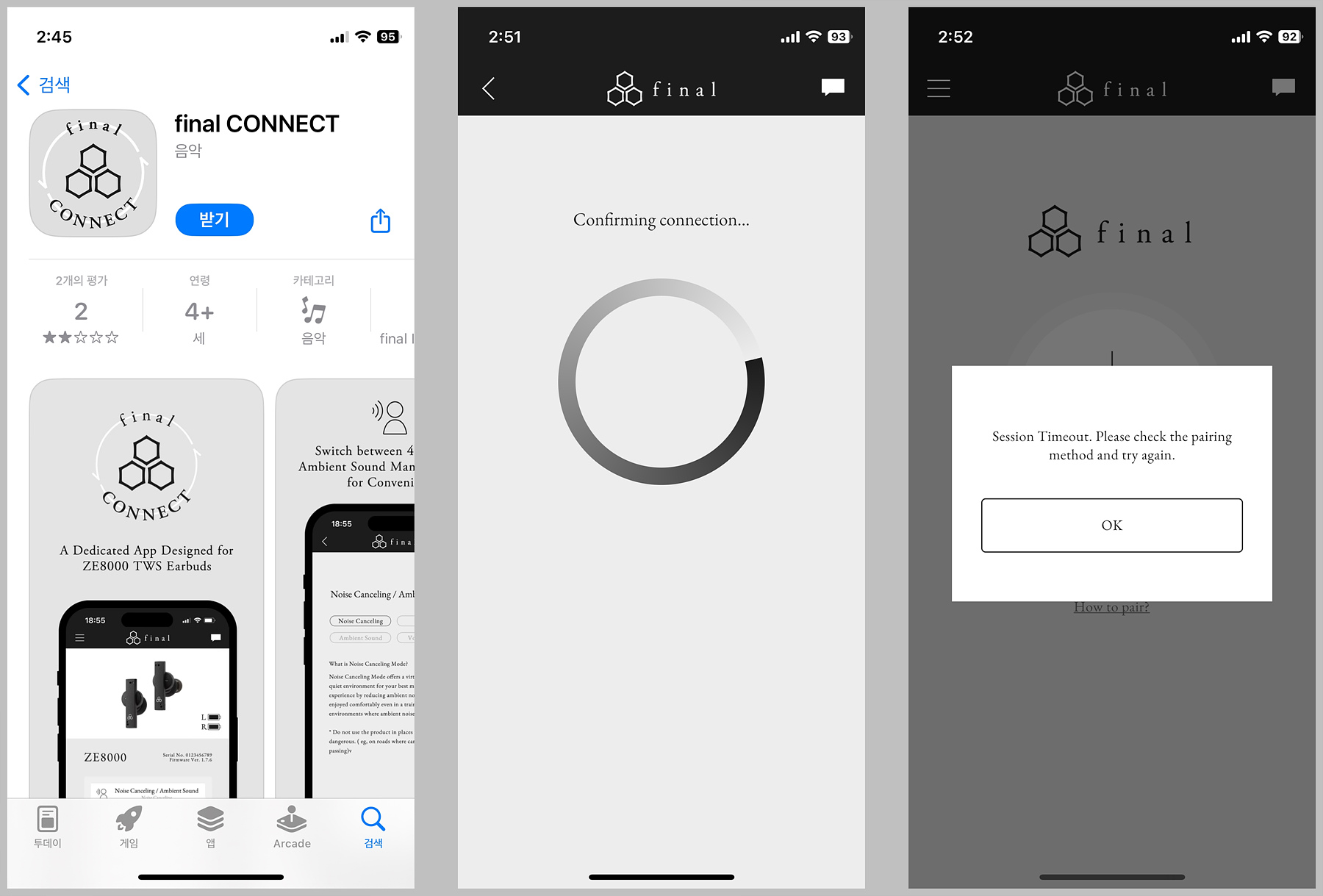 이번 파이널 ZE8000 블루투스 이어폰은 다른 제품보다는 조금 더 오랫동안 테스트를 했는데 사용자에 따라 평가가 정말 극과 극으로 나뉠 거라 예상이 됩니다. 케이스 & 이어버드의 크기, 디자인 그리고 재질까지 현재 판매되는 TWS들과는 상당히 다른 모습일 뿐 아니라 비슷한 가격대에 판매되는 제품들과 비교한다면 기능적인 부분에서는 부족한 모습이 많이 보였습니다. 펌웨어 업데이트 이후 멀티 포인트가 가능해진 점은 다행이지만 앱의 기능과 완성도 역시 아쉬운 부분이 많이 보였습니다.