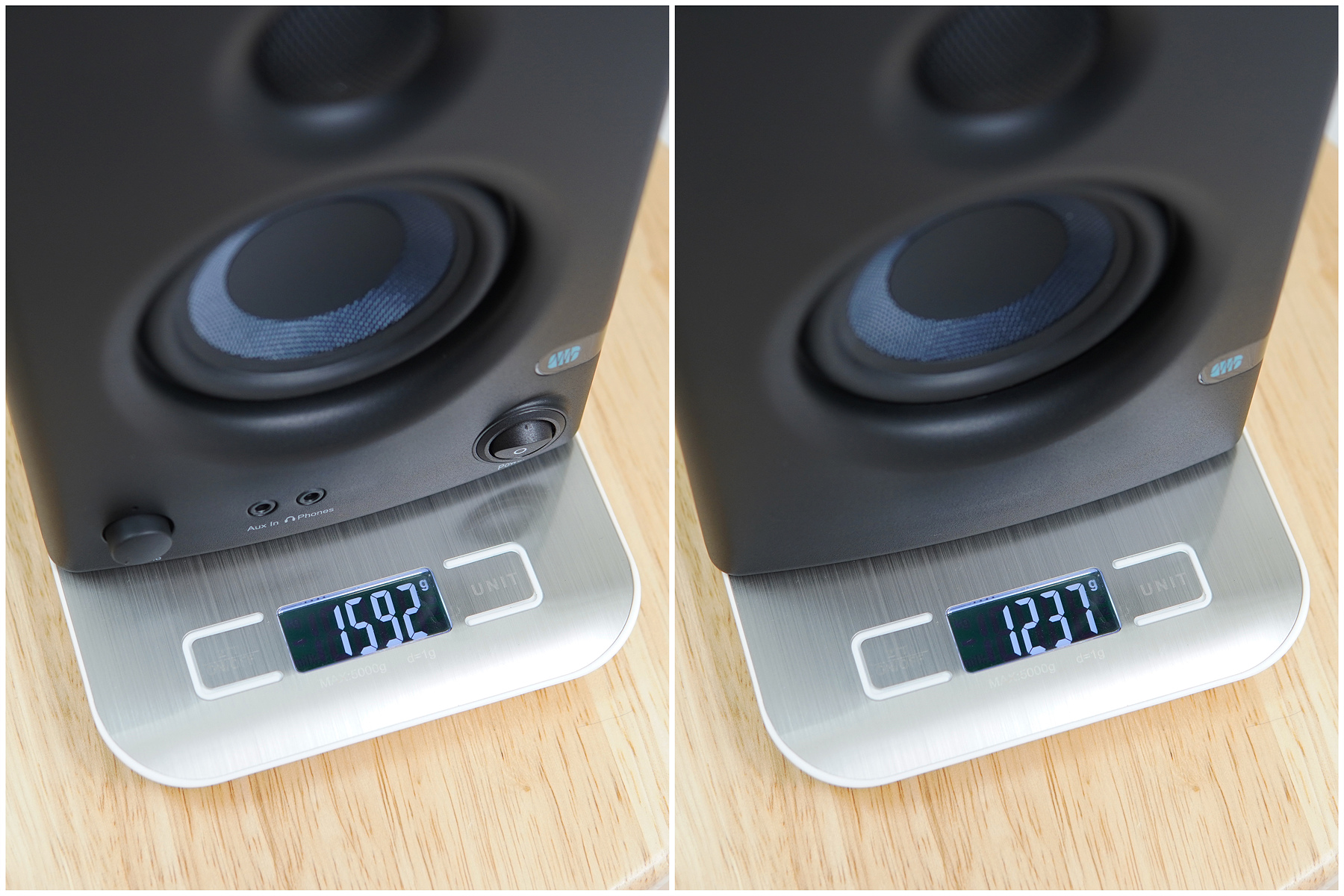 일반적인 스피커에서 사용하는 RCA 입력뿐 아니라 모니터 스피커라는 이름답게 1/4"(6.3mm) TRS Balanced 입력을 지원해서 오디오 인터페이스나 믹서(mixer) 같은 전문적인 장비와도 직접 연결할 수 있습니다. 어쿠스틱 튜닝의 경우 Low는 100Hz 대역을, Hight는 10kHz 근처 대역의 주파수를 -6db ~ +6dB까지 조절할 수 있어서 사용하는 환경(room)이나 취향에 맞게 조절을 할 수 있습니다. Gen2 스피커에서는 Standby 전원 스위치가 추가되었는데 아마도 절전 모드를 위한 추가 기능인 거 같습니다.