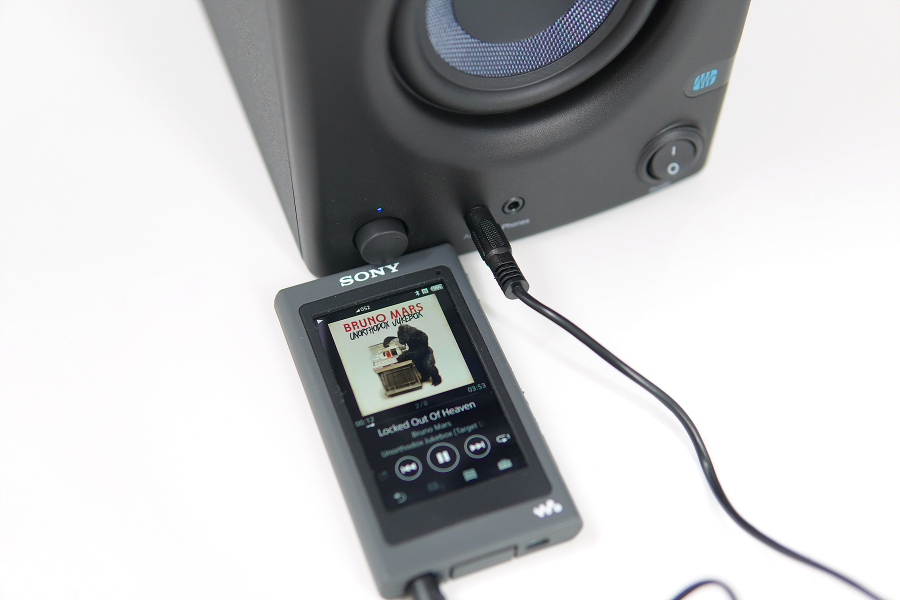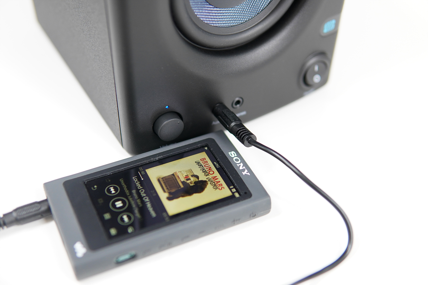 앞쪽의 3.5mm 입력 단자를 통해 스마트폰, DAP는 물론 닌텐도 스위치와 같은 기기와 연결해서 소리를 들을 수 있을 뿐 아니라 출력 단자로 이어폰이나 헤드폰을 연결할 수 있습니다.