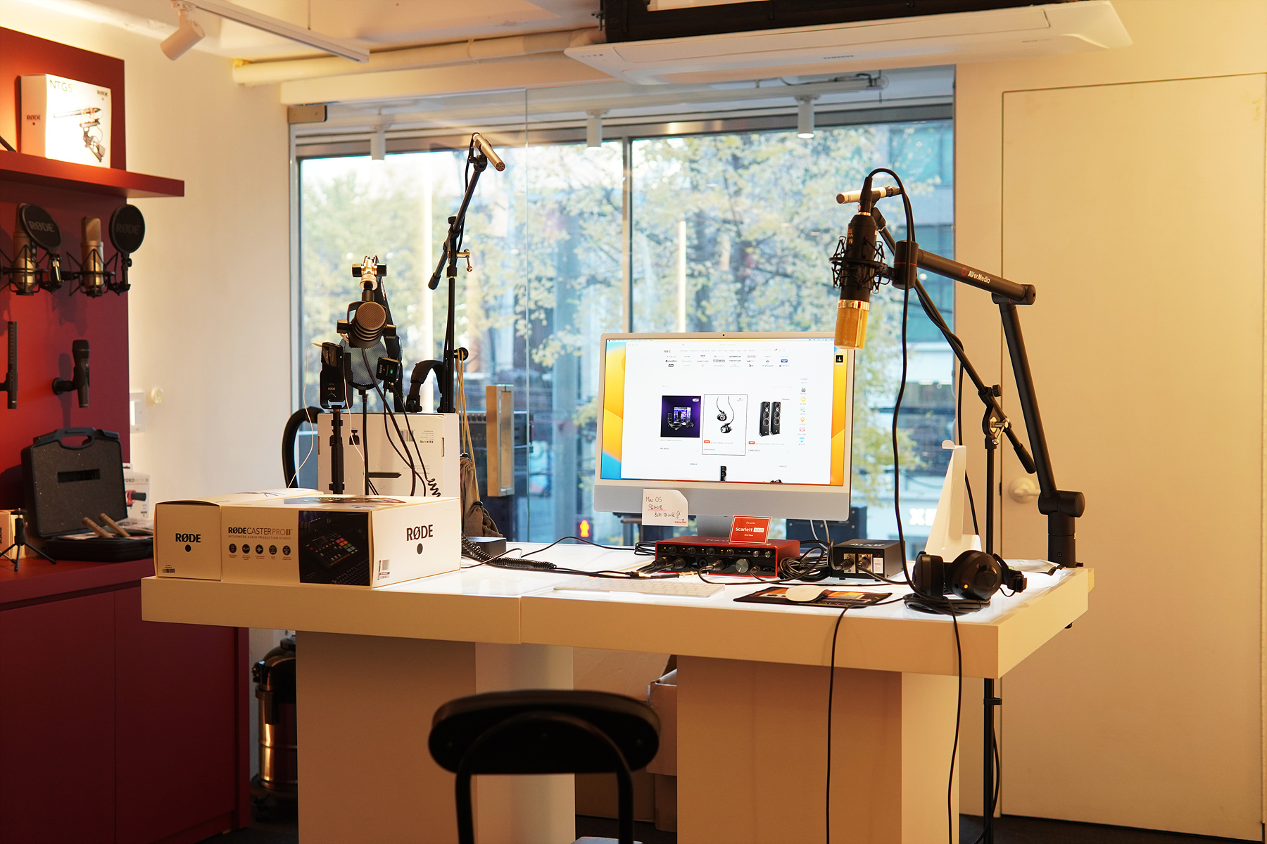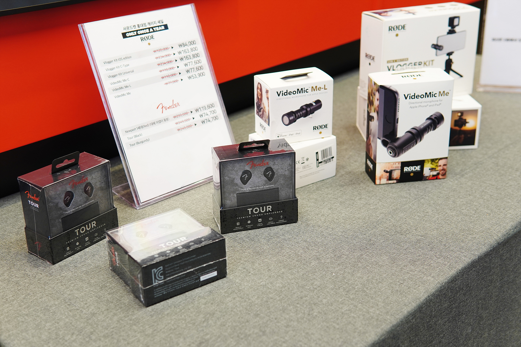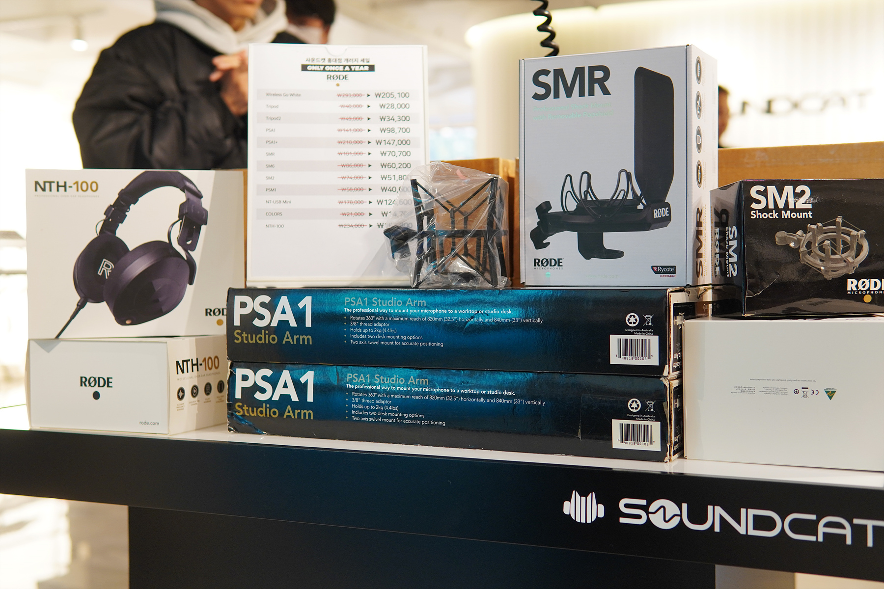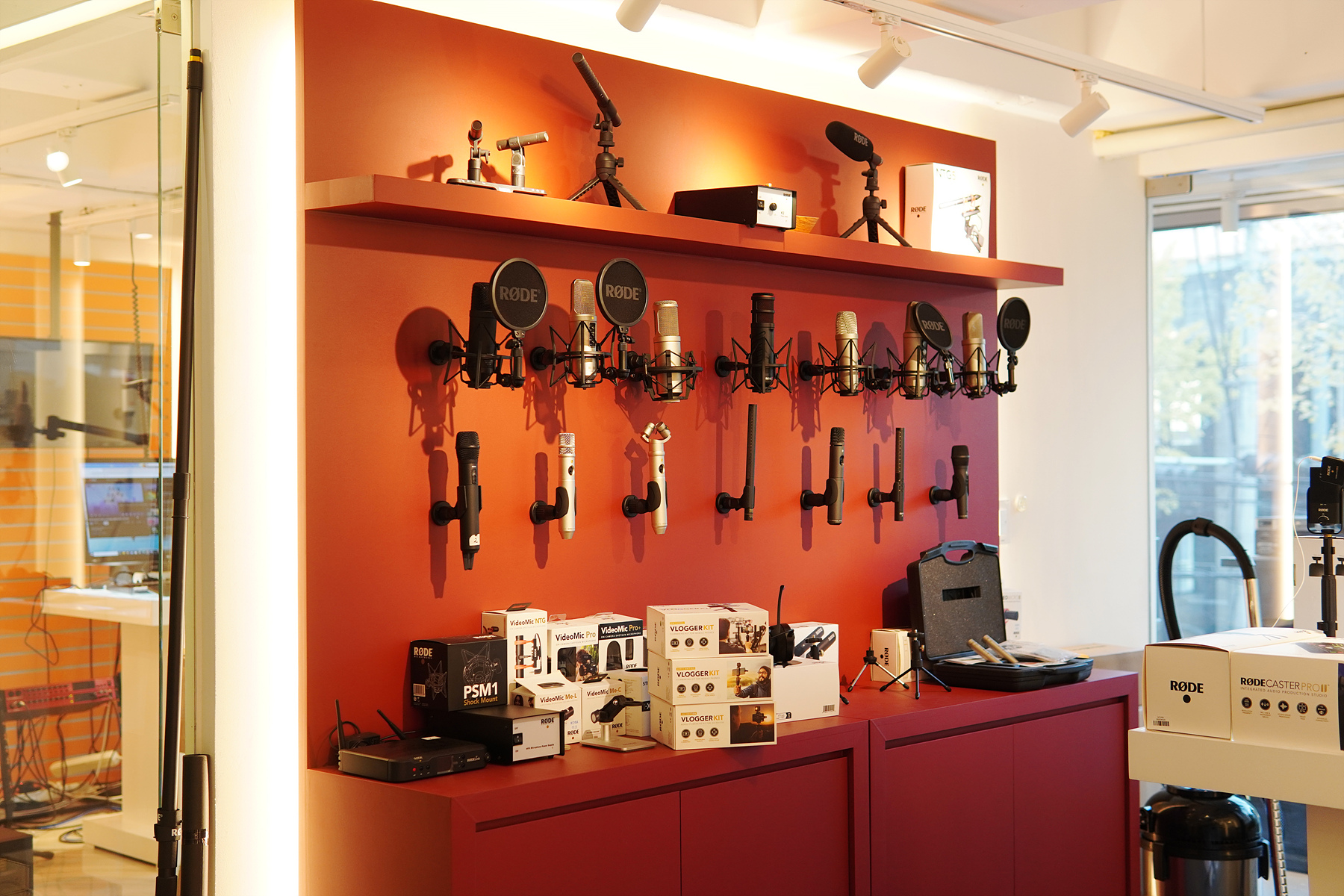 1층 입구에는 Happy Plugs, Fender, RODE 브랜드 제품들이 진열이 되어있었는데 로데(RODE) 마이크를 좋아해서인지 뽐뿌가 꽤 있었습니다.