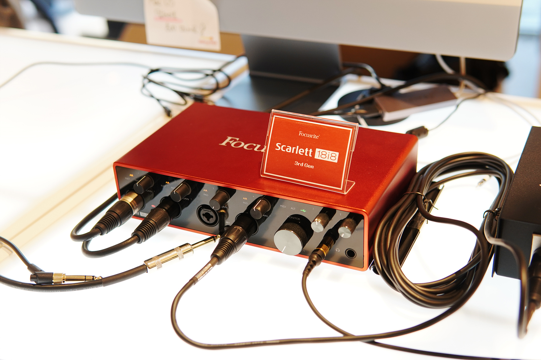 다양한 마이크와 함께 포커스라이트의 스칼렛 18i8 3세대 오인페가 설치되어 있습니다. 마치 그분이 생각나는 빨간색 하우징의 스칼렛의 하우징은 상당히 매력적이죠. (스칼렛은 얼마 전 4세대가 출시되었습니다.)