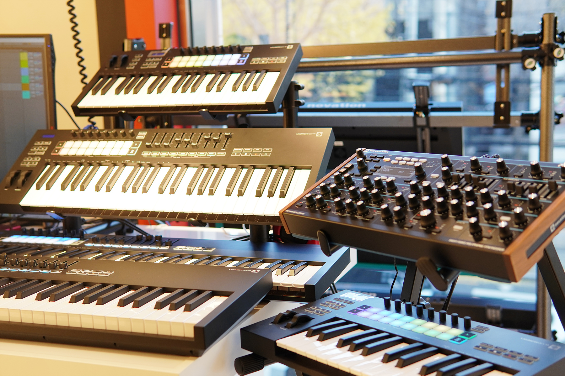 가장 안쪽으로는 감상이 아닌 실제 작업을 할 수 있는 신디사이저, 믹서, 이펙트 장비들이 준비가 되어 있습니다. 사운드캣 홍대점의 경우 일반적인 청음샵과는 조금 다르게 일반 소비자들뿐 아니라 음악이나 콘텐츠를 직접 다루는 크리에이터들을 위한 장비와 공간이 조금 더 많이 준비가 되어있는 편이었습니다.