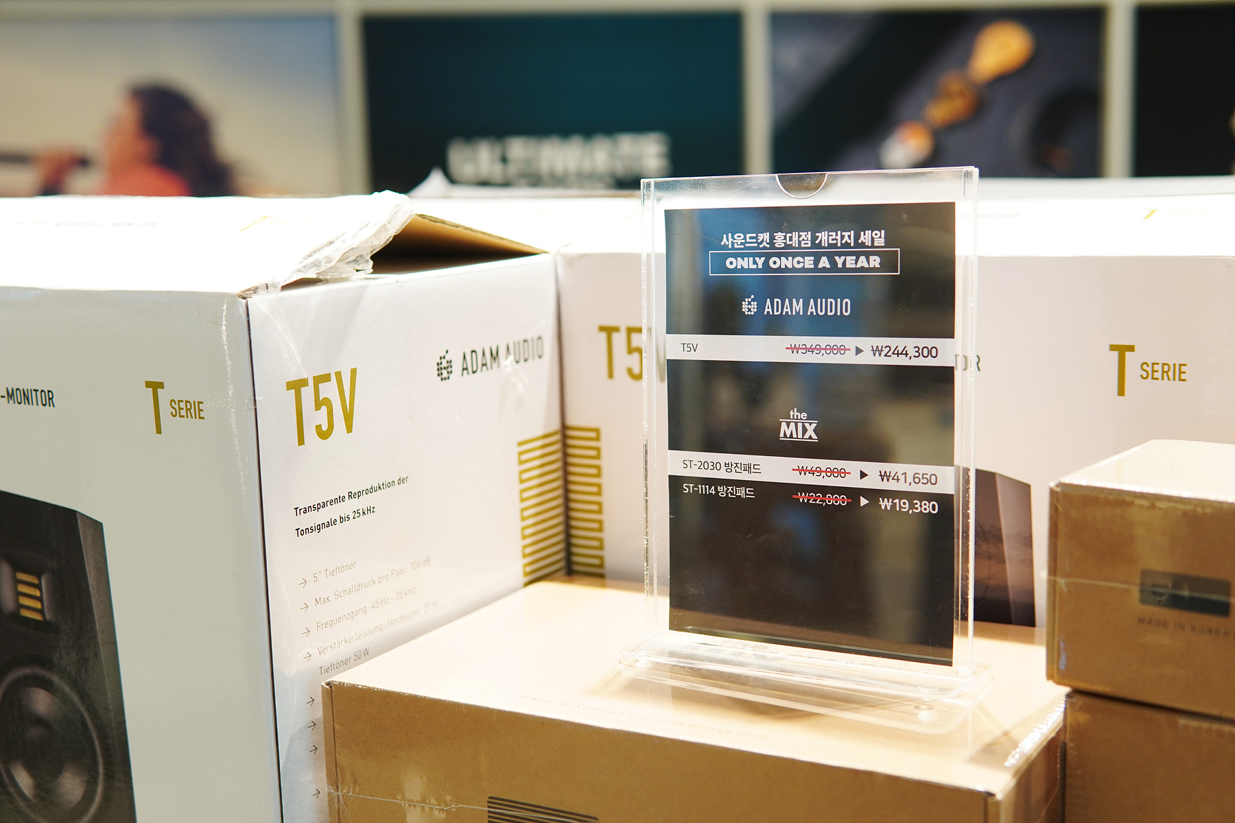 개러지 세일은 용산, 홍대점에 따라 행사 제품들이 달랐는데 홍대점에서 진행된 아담오디오 T5V 스피커의 가격이 너무 좋아서 이 앞에서 한참을 머무르며 고민을 했습니다.
