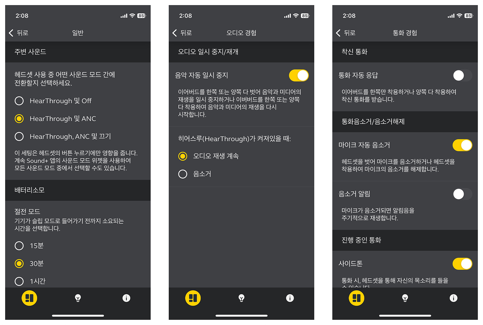 엘리트 8 Active는 음악 재생이나 통화 모두 사용자가 임의로 설정할 수 있습니다. 하위 기종들에서는 이 부분이 빠져있었는데 아무래도 서열이 좀 있는 형님이다 보니 기능적인 부분에서도 신경을 쓴 거 같네요.