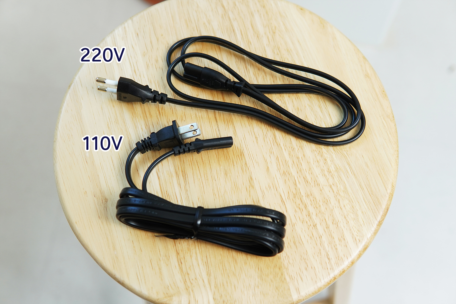 저는 직구로 구입해서 110V 케이블인데 변환 젠더를 사용하기보다 사진처럼 220V 8자형 전원 케이블을 구입해서 사용하는 걸 추천합니다. 8자형 전원 플러그는 2천원 정도로 저렴하니 원하는 길이에 맞게 구입하세요.