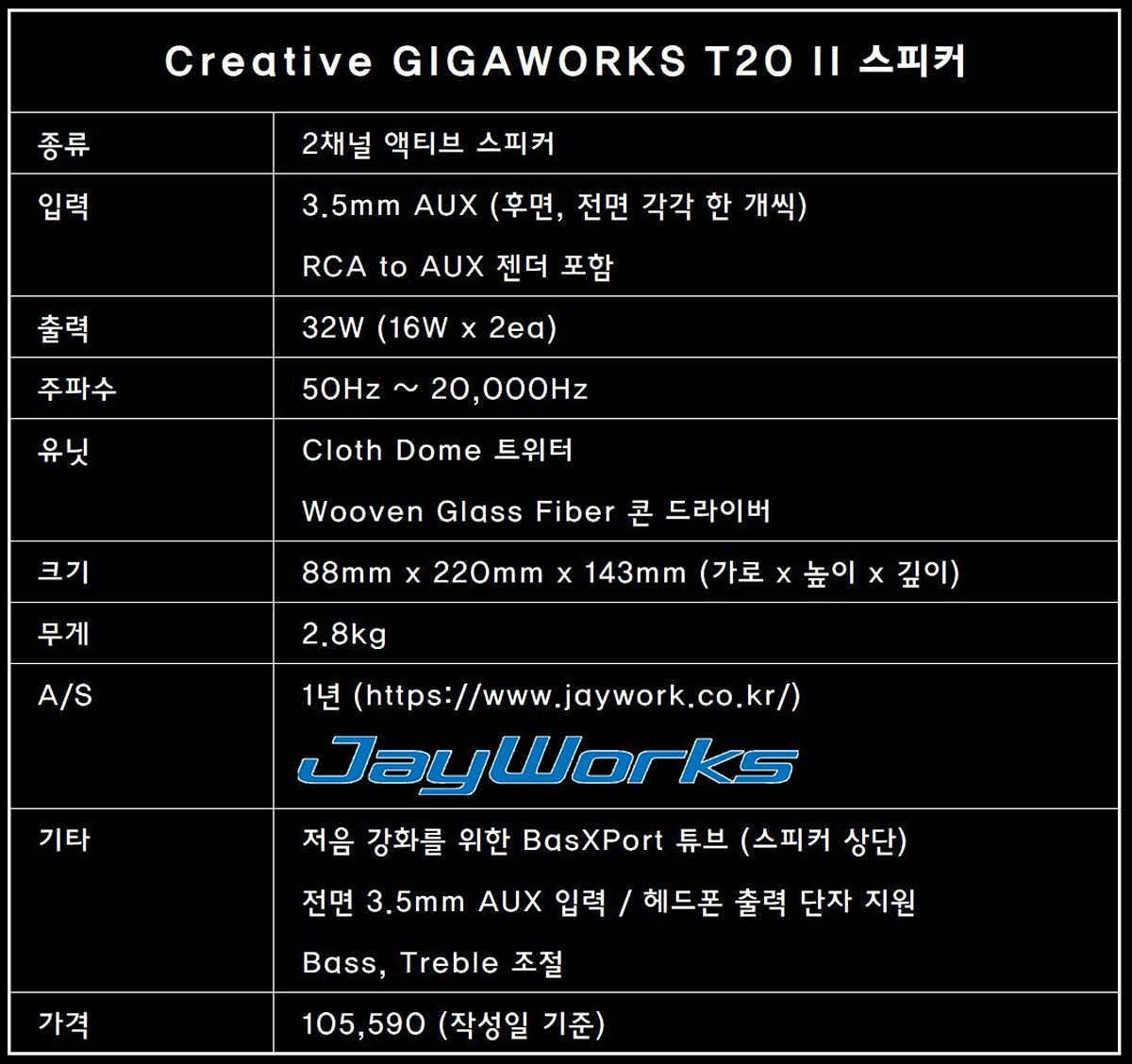 크리에이티브 T20 II의 경우 베스트셀러와 동시에 10년이 넘는 시간 동안 꾸준하게 팔린 스테디셀러 두 개의 왕관을 모두 가지고 있습니다. 가로길이가 짧고 높이가 있는 크기와 위쪽 방향으로 향한 베이스 포트는 좁은 공간에의 사용하기 좋으며 드라이버의 크기가 그리 크지 않음에도 중저역에서 저음까지의 표현하는 능력은 하이파이가 아닌 PC나 콘솔 게임기에서 사용하는 용도에서는 무리가 없었습니다. 발매 당시와 지금 시장의 소리에 대한 취향이 많이 다름에도 꾸준하게 팔린다는 건 제품의 완성도 역시 어느 정도 된다고 봐야겠죠.