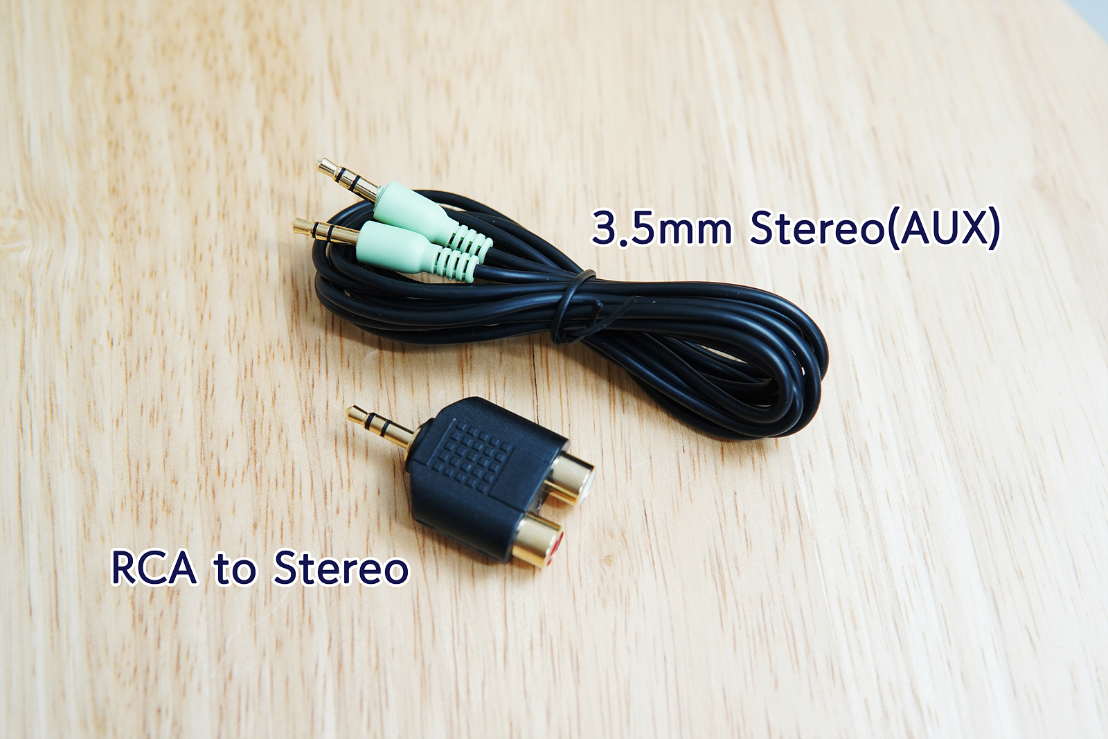 3.5mm AUX 케이블은 PC와 연결할 때 사용할 수 있으며 RCA 출력을 지원하는 기기(DAC, 콘솔)와 연결할 때는 RCA to Stero 변환 젠더로 사용할 수 있습니다.